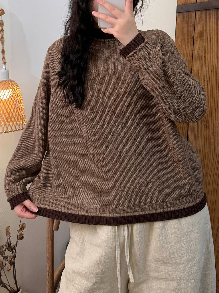 Kvinder Vinter Casual Ren Farve O-hals Sweater