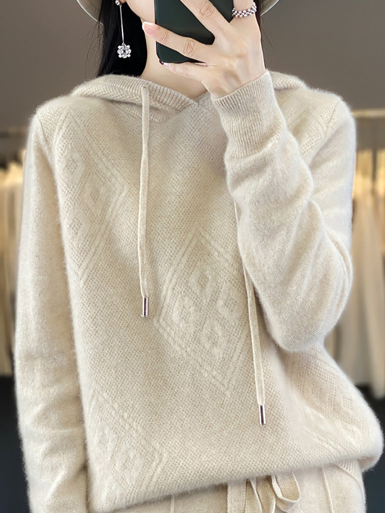 Kvinder Vinter Rhomboids Hættetrøje med Strikket Uld