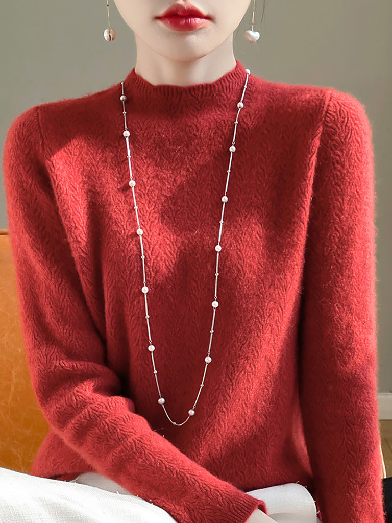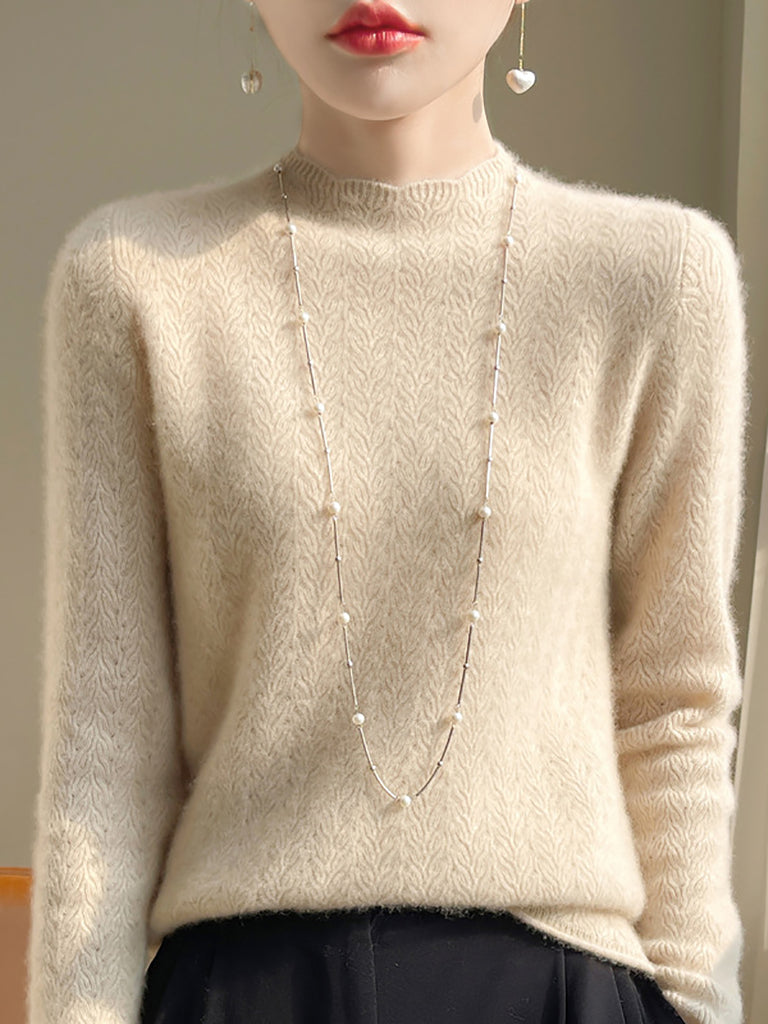 Kvinder Vinter Hæklemønstret Halv-Turtleneck Uldtrøje