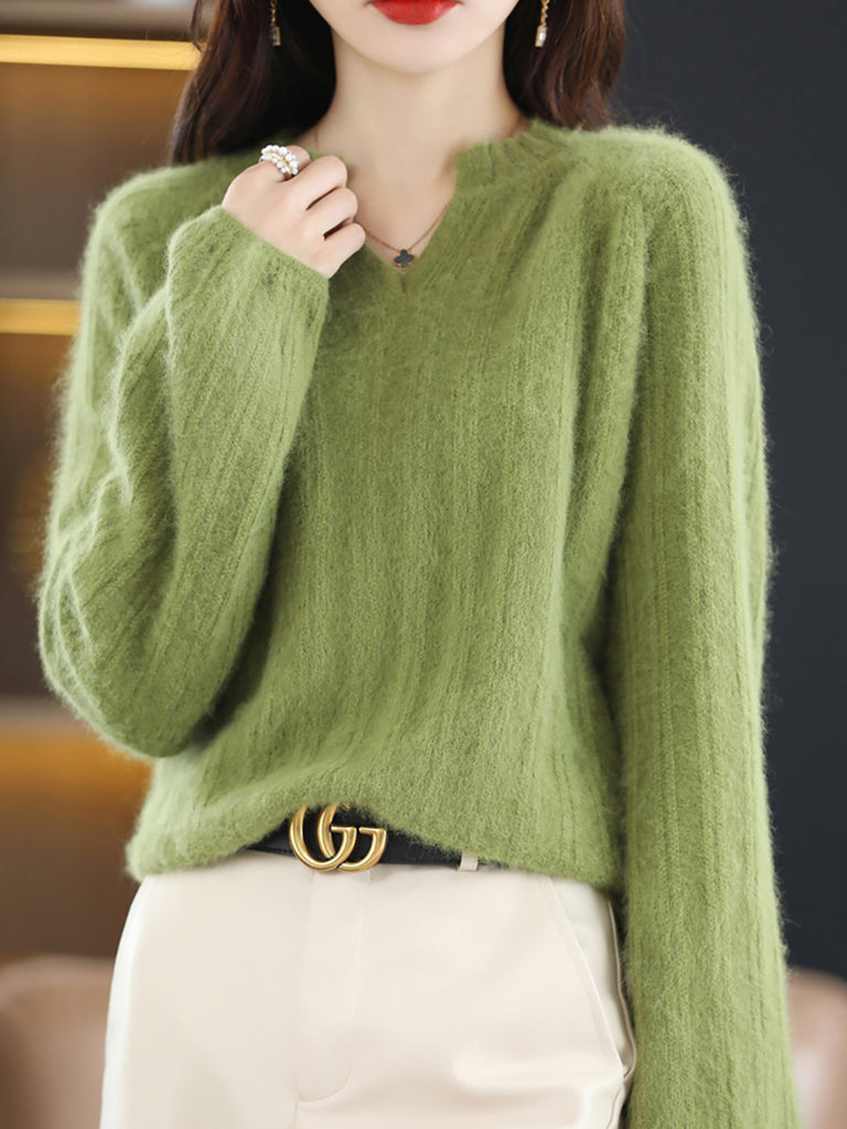 Kvinders vintertrøje med V-hals i ren farve
