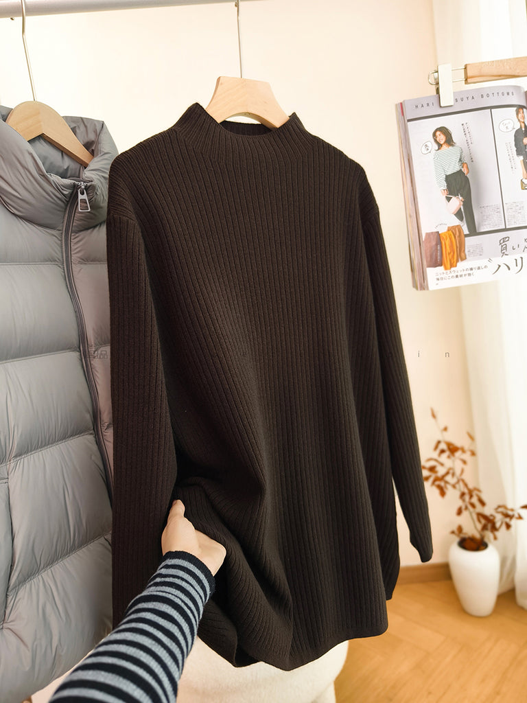 Kvinder Efterårskunstnerisk Ren Farve Halv-Turtleneck Sweater