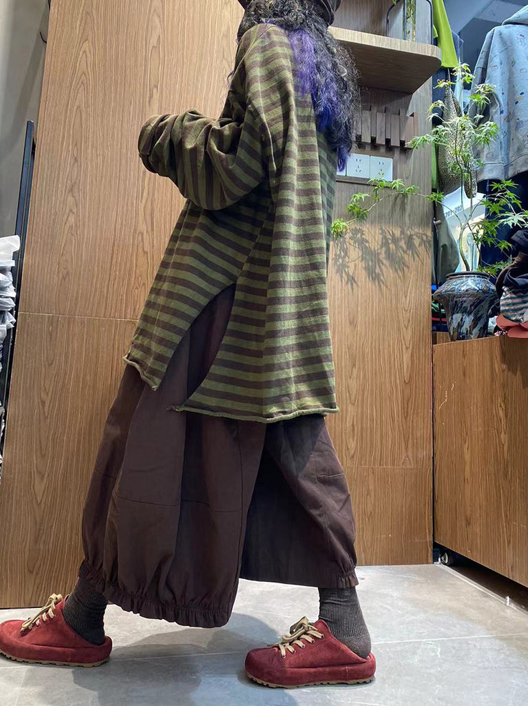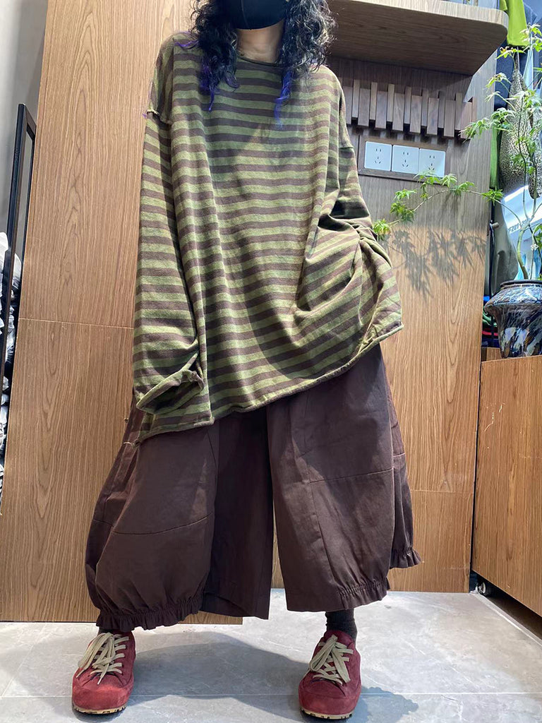 Kvinder Efterår Vintage Stribet 100% Bomuld O-hals Bluse