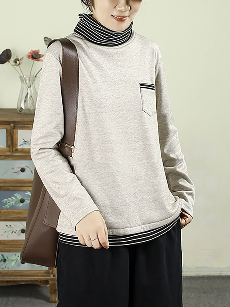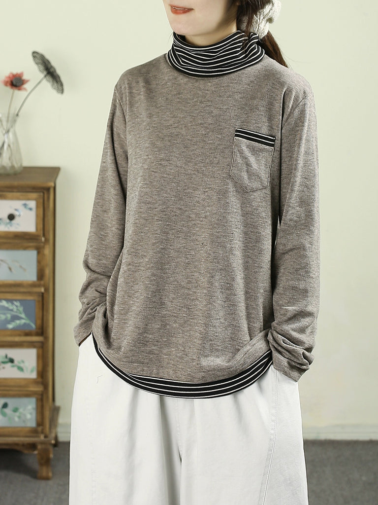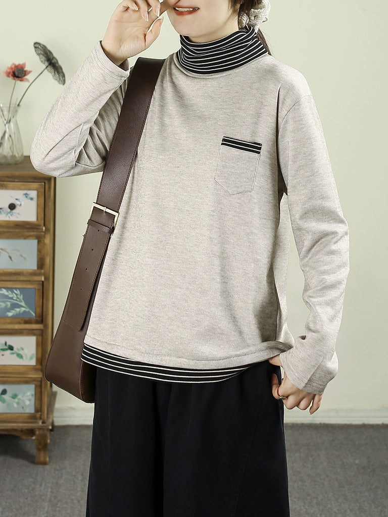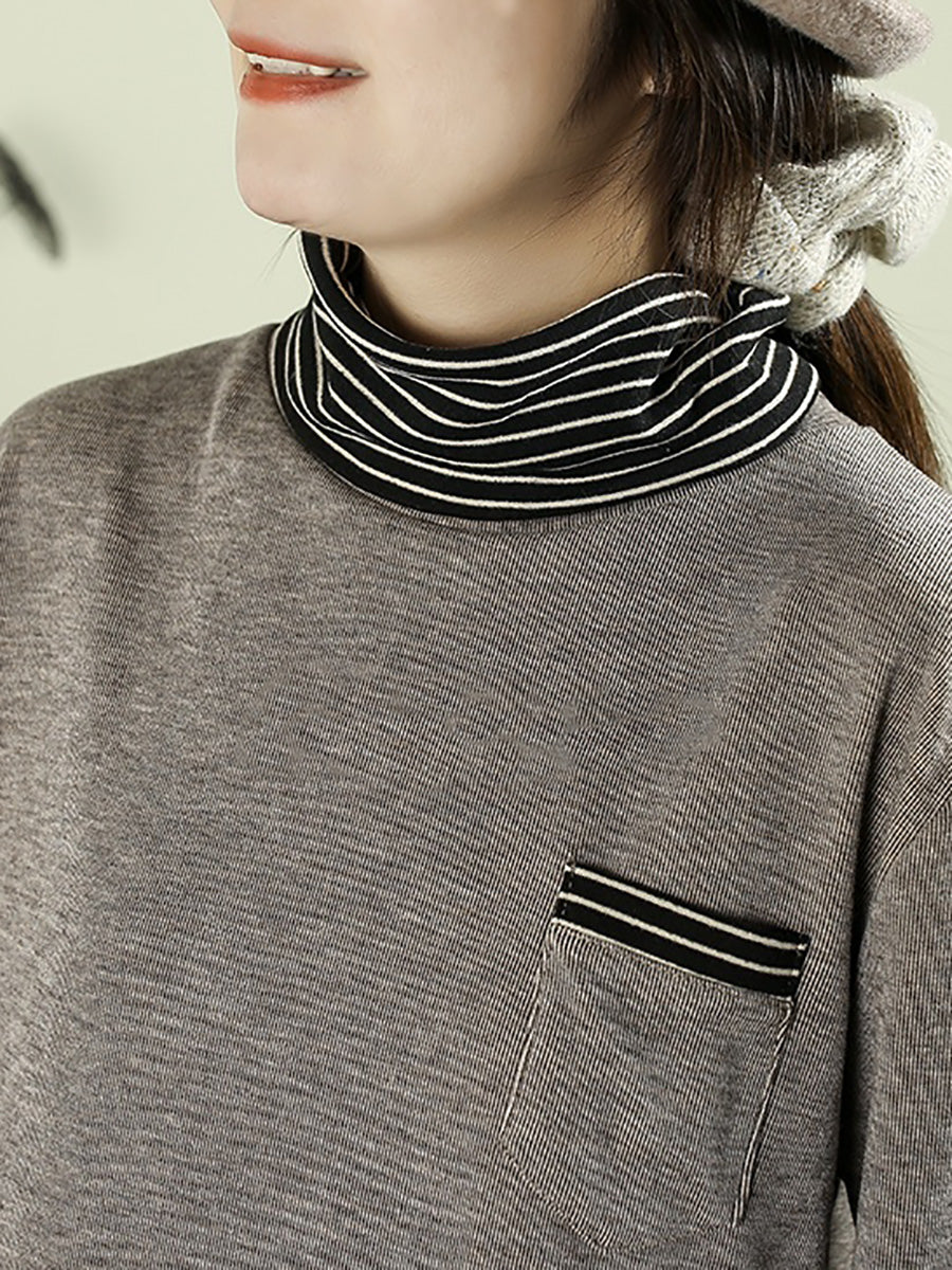 Dame vinterstribet splejset turtleneck fleeceforet bluse