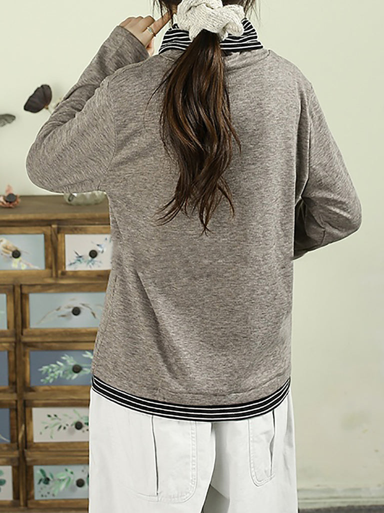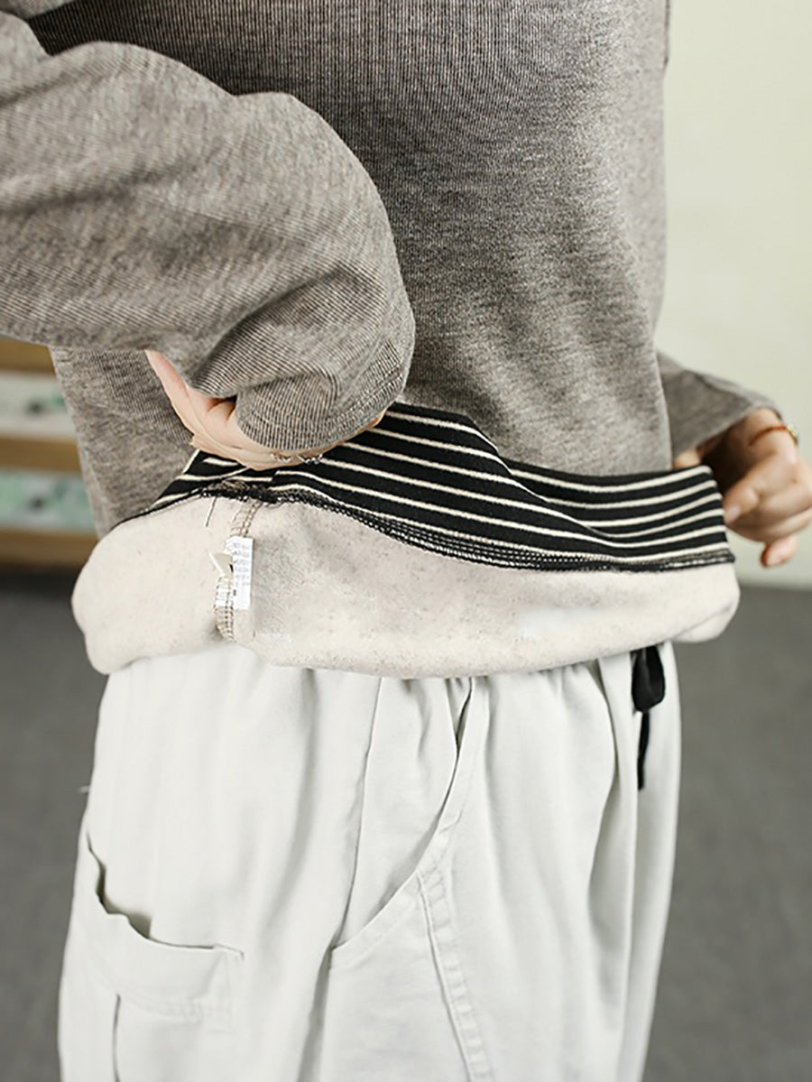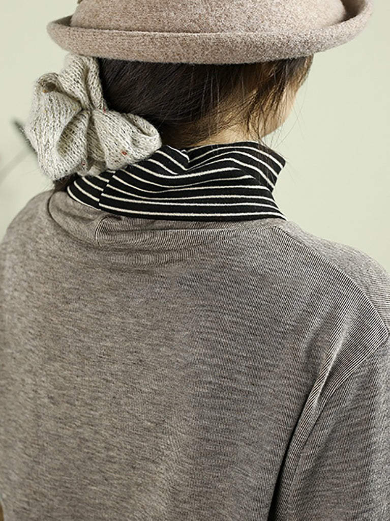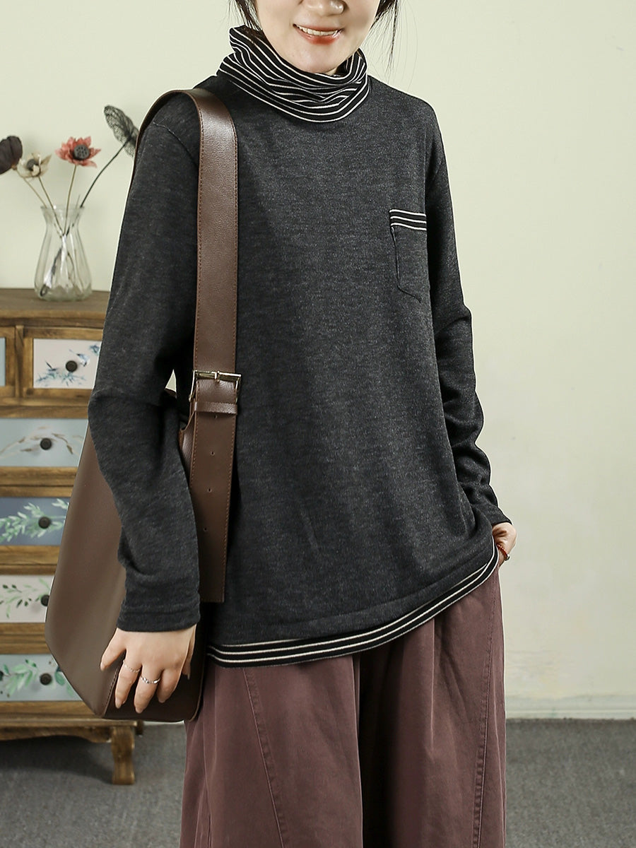 Dame vinterstribet splejset turtleneck fleeceforet bluse