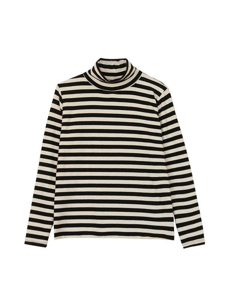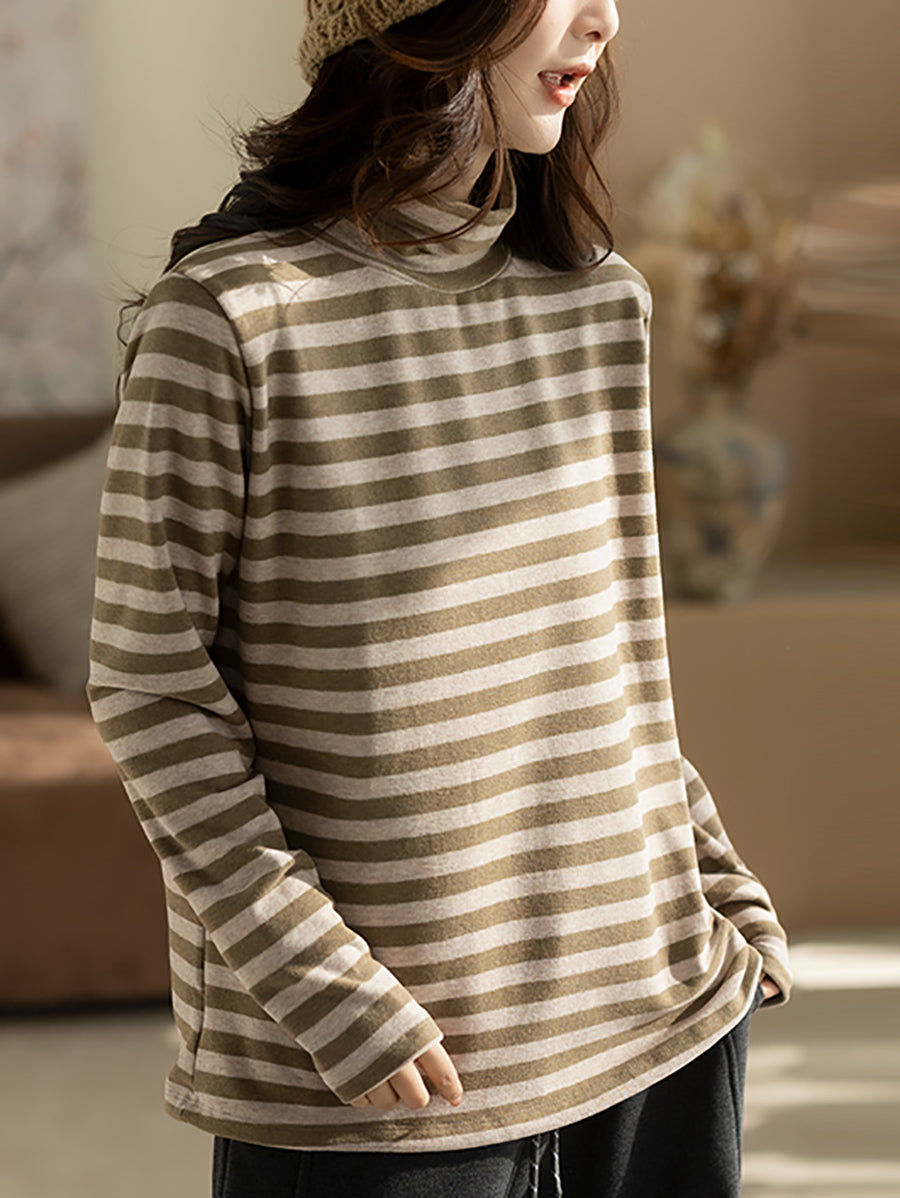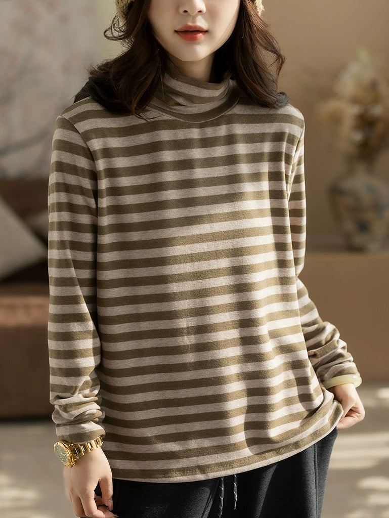 Dame Vintage efterårsstribet turtleneckbluse