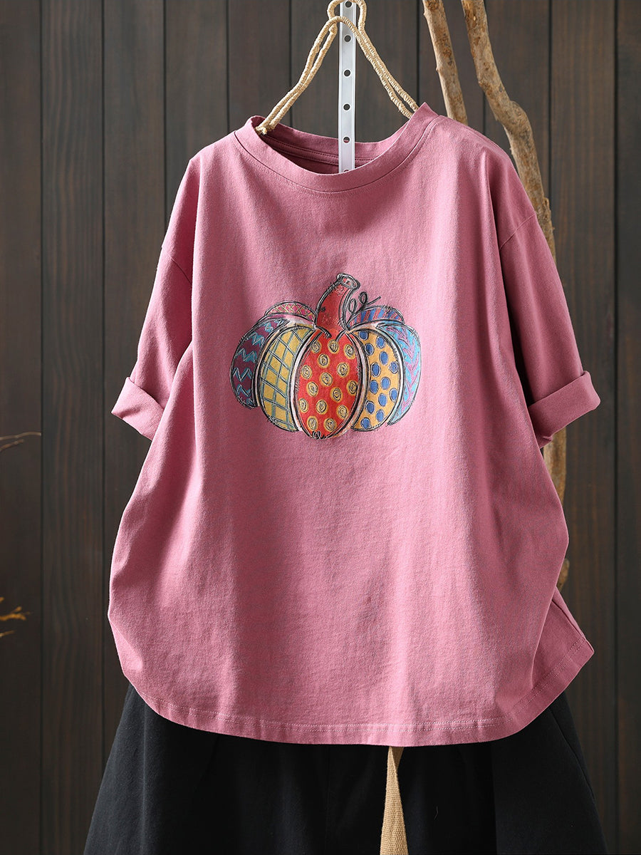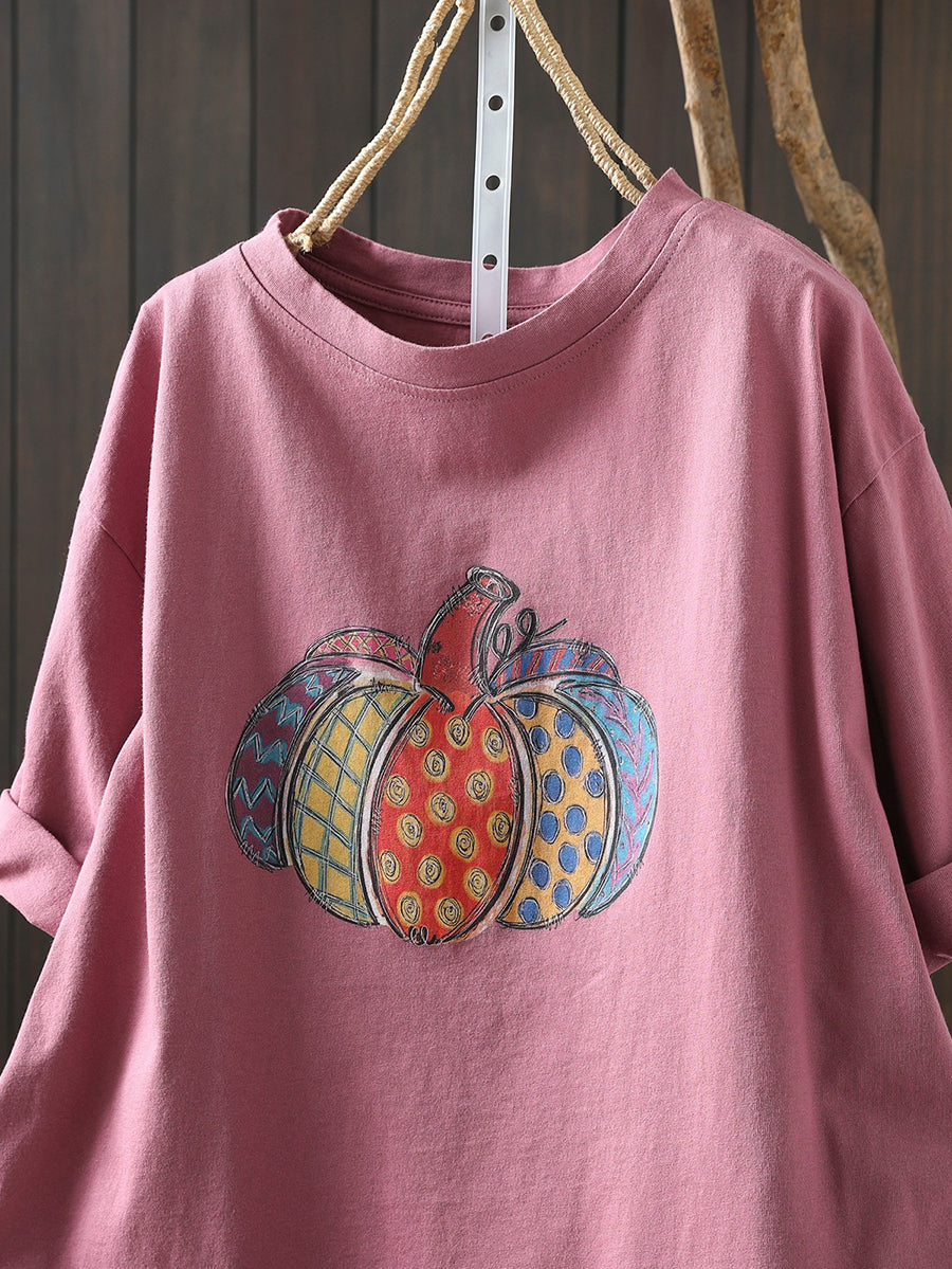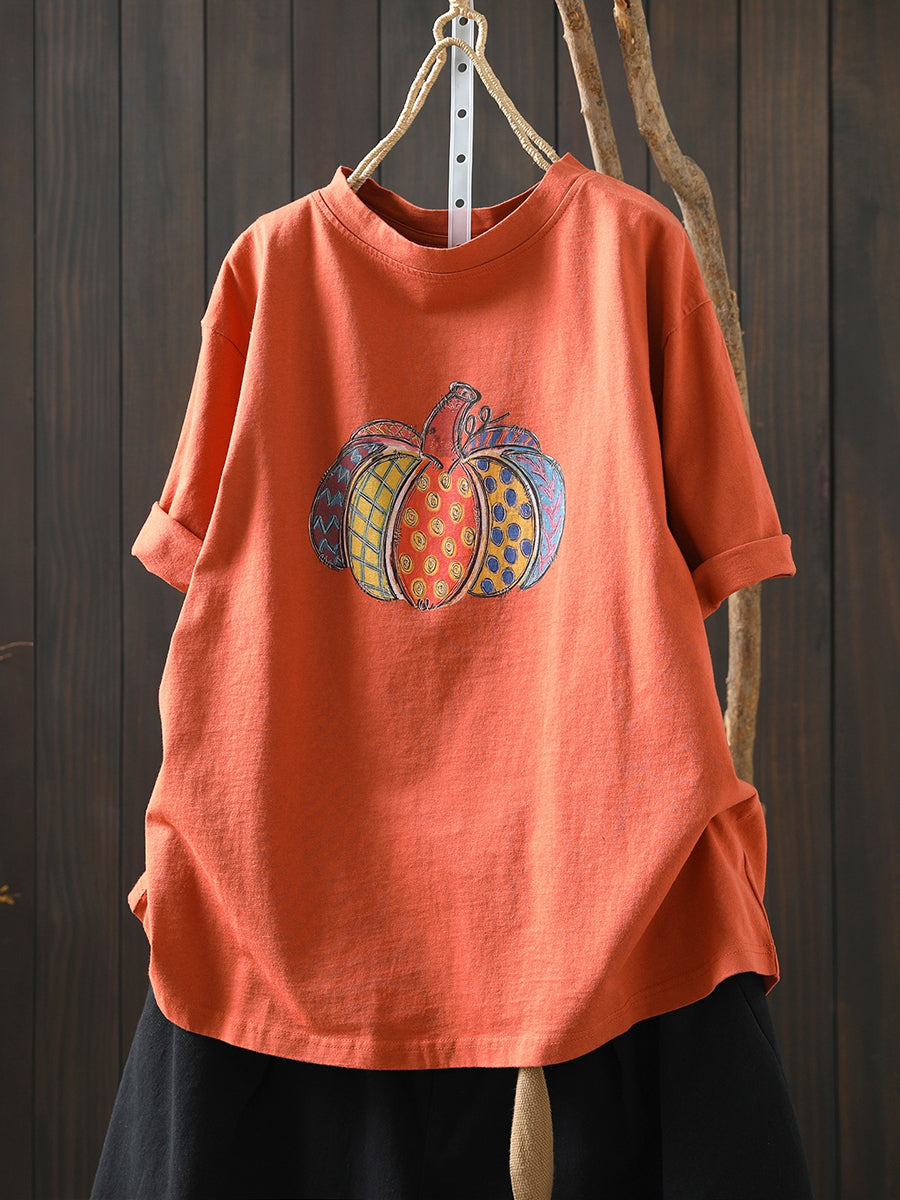 Dame sommer kunstnerisk græskar bomuldsskjorte