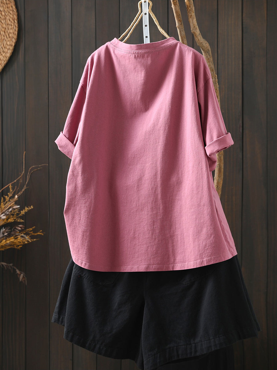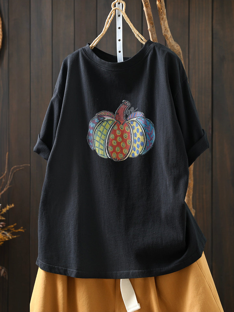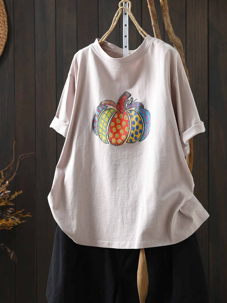 Dame sommer kunstnerisk græskar bomuldsskjorte