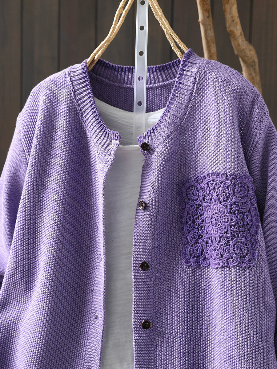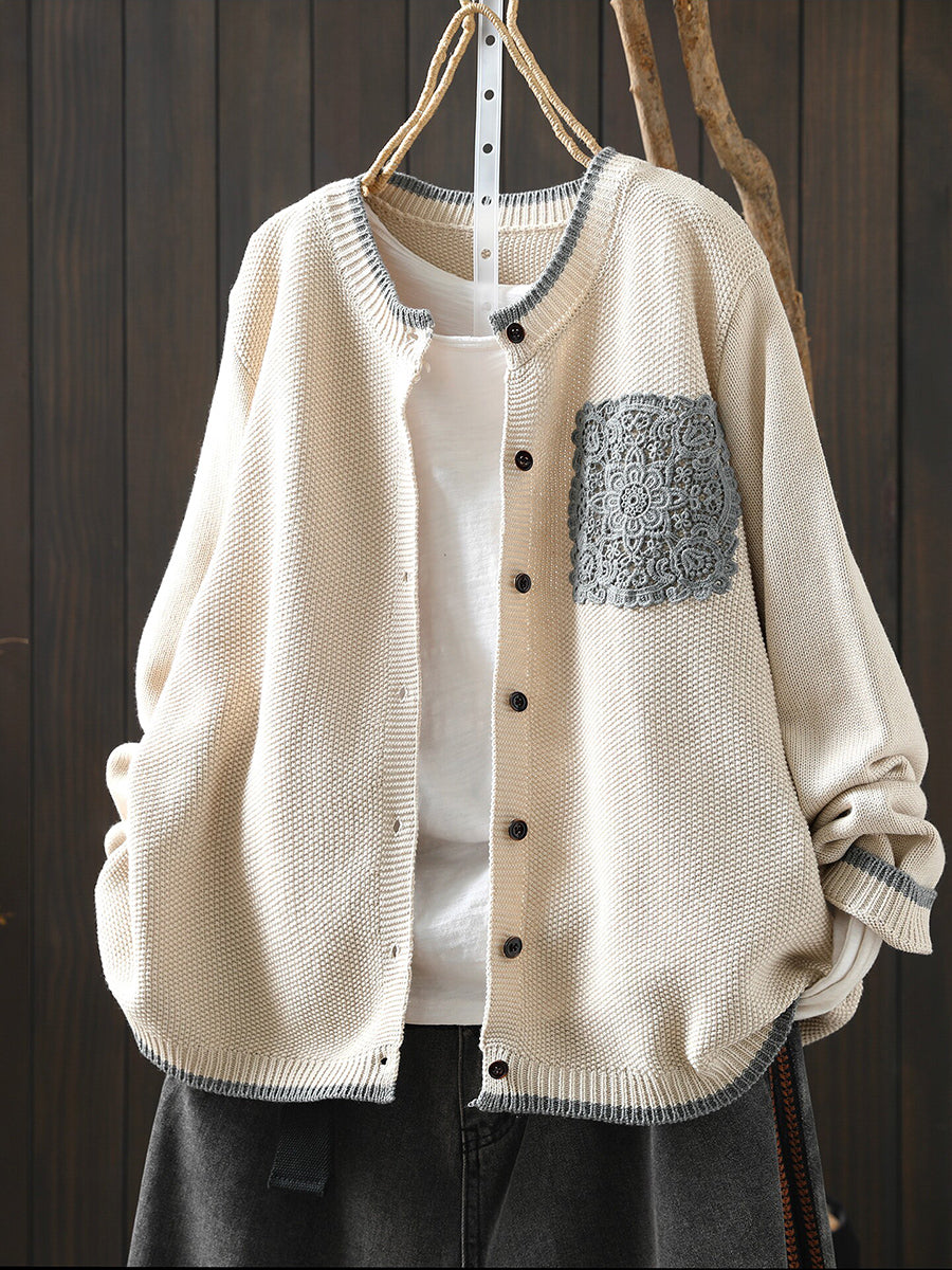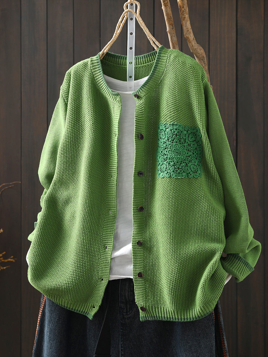 Dame forårskunstnerisk bomuldscardigan med blondemærker