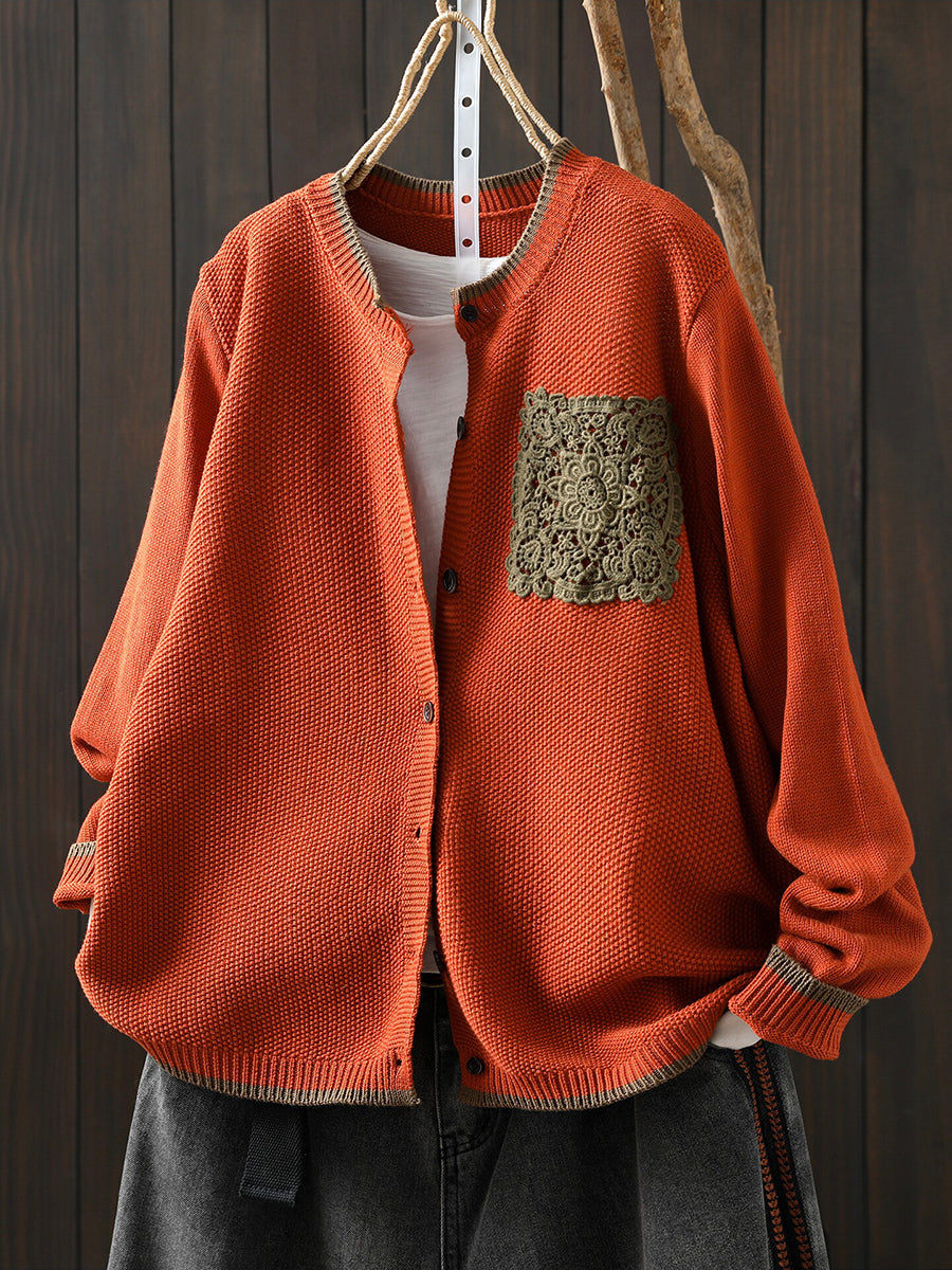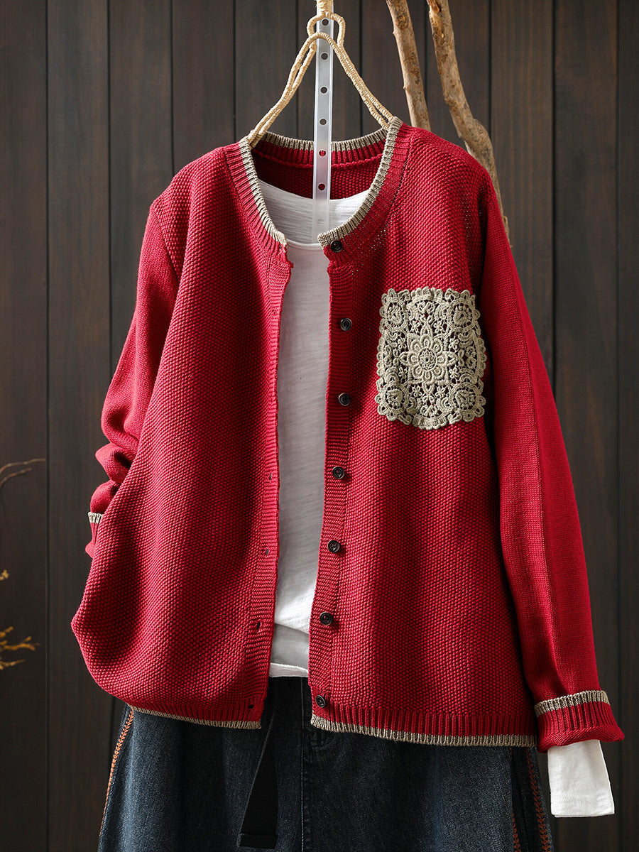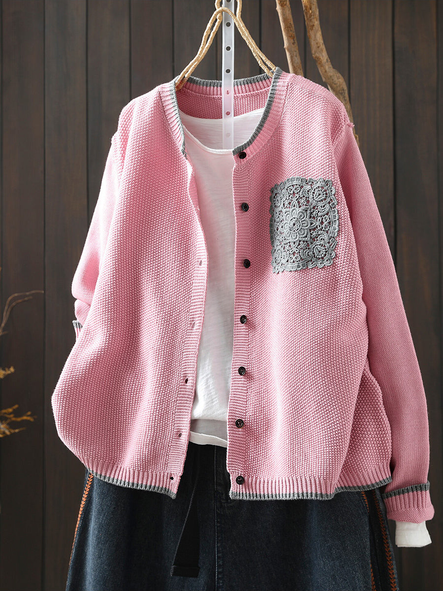 Dame forårskunstnerisk bomuldscardigan med blondemærker