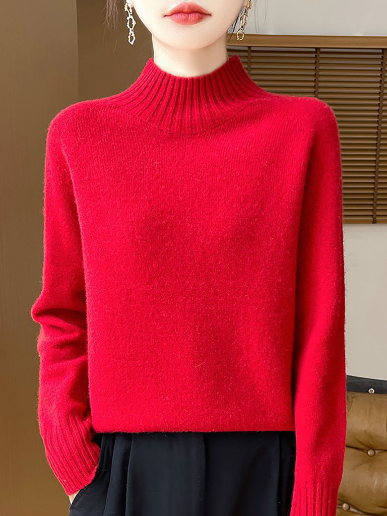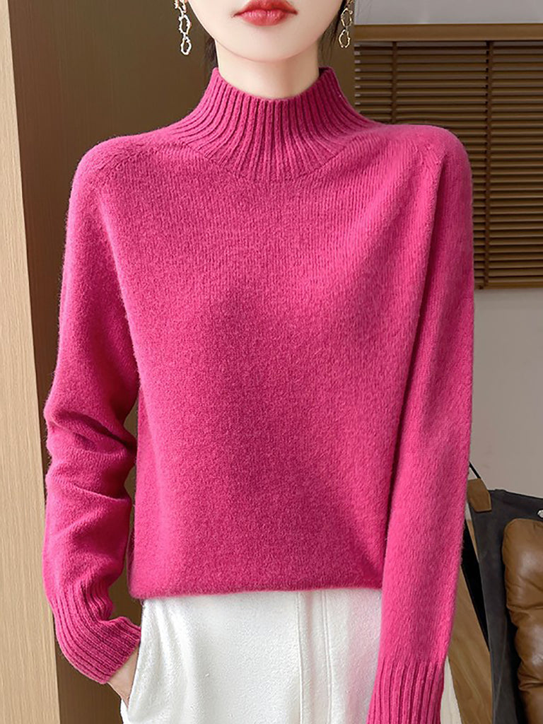Kvinder Efterårskunstnerisk Ren Farve Halv Rullekravetrøje