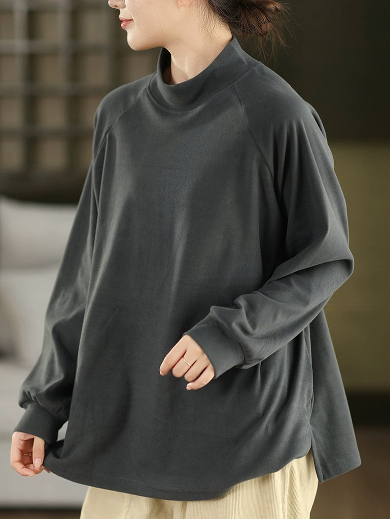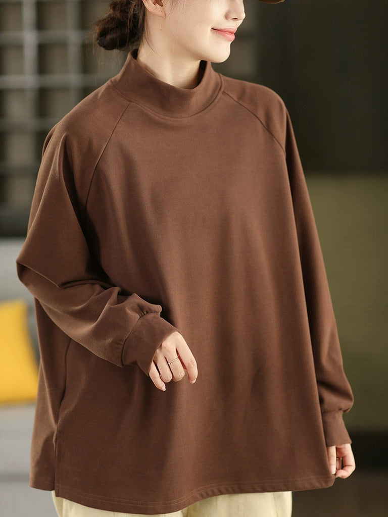 Kvinder Vinter Kunstnerisk Ren Farve Halv-Turtleneck Bluse 100% Bomuld