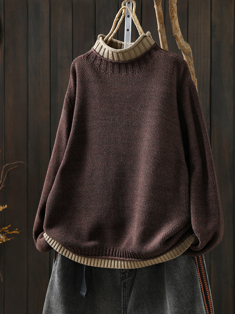 Kvinder Efterårs Kunstnerisk Farveblok Halv-Turtleneck Sweater