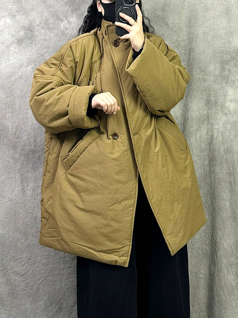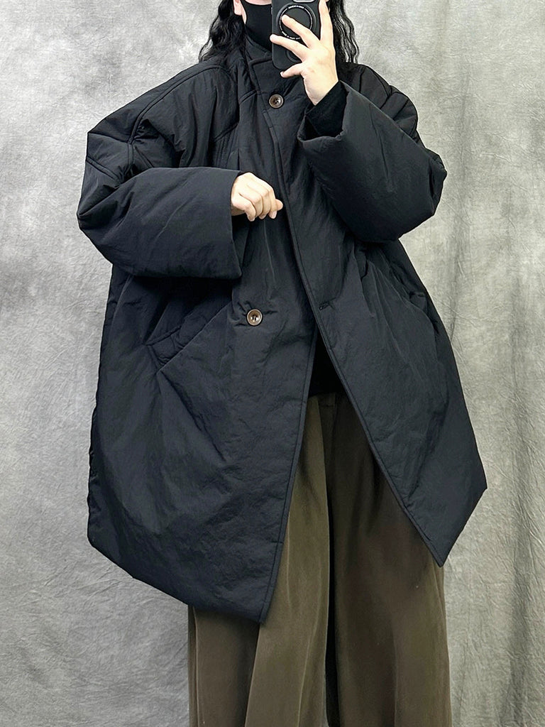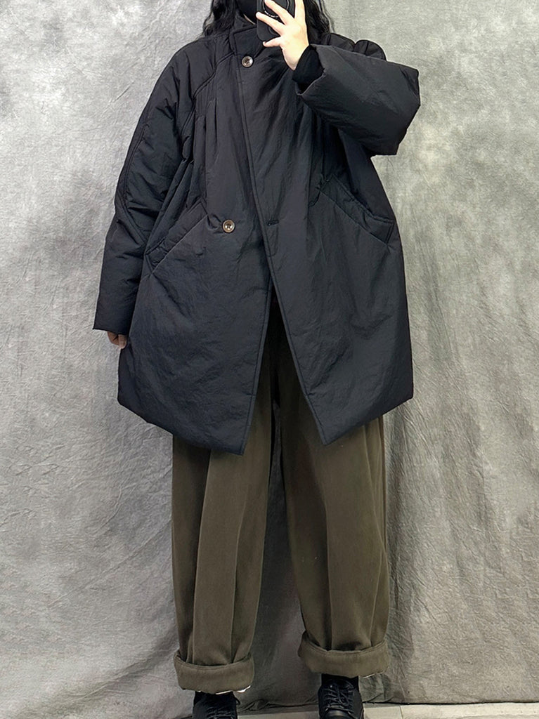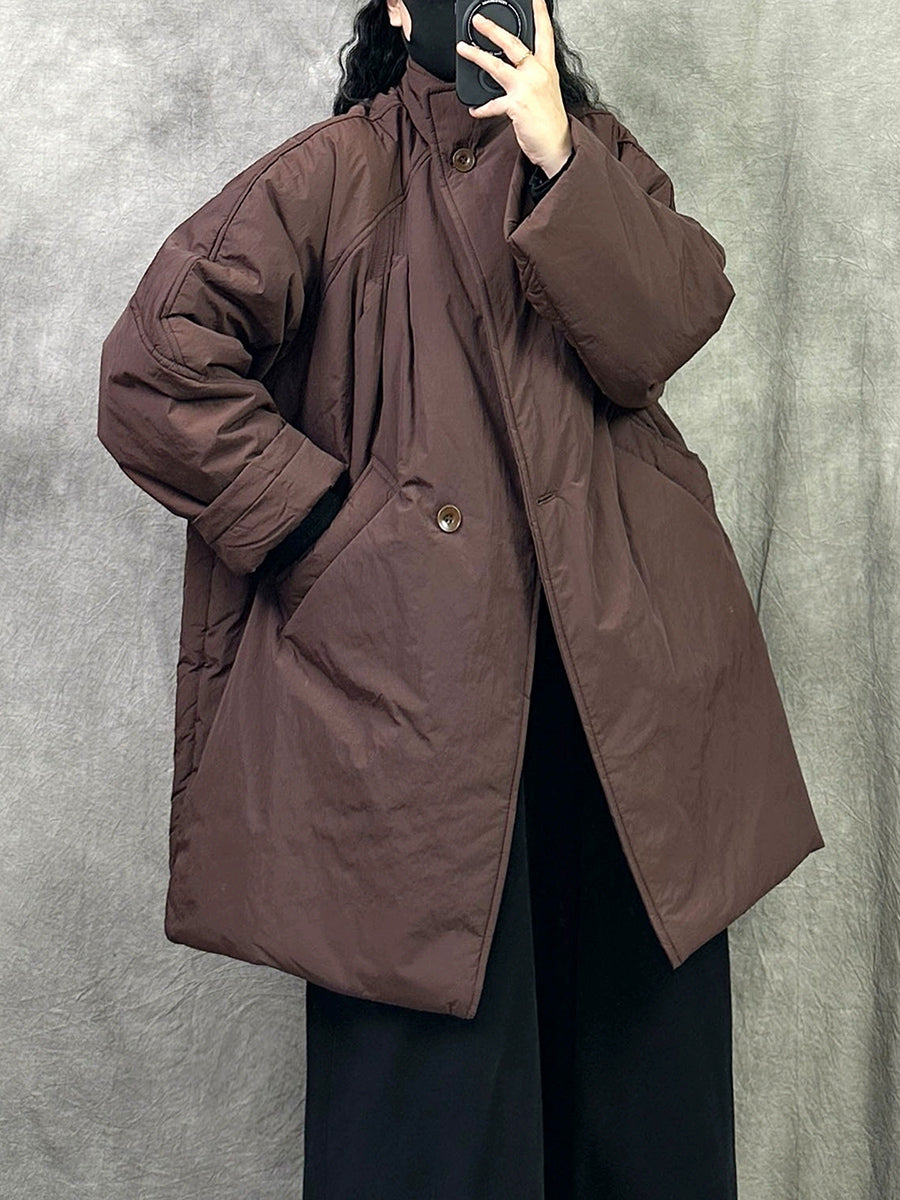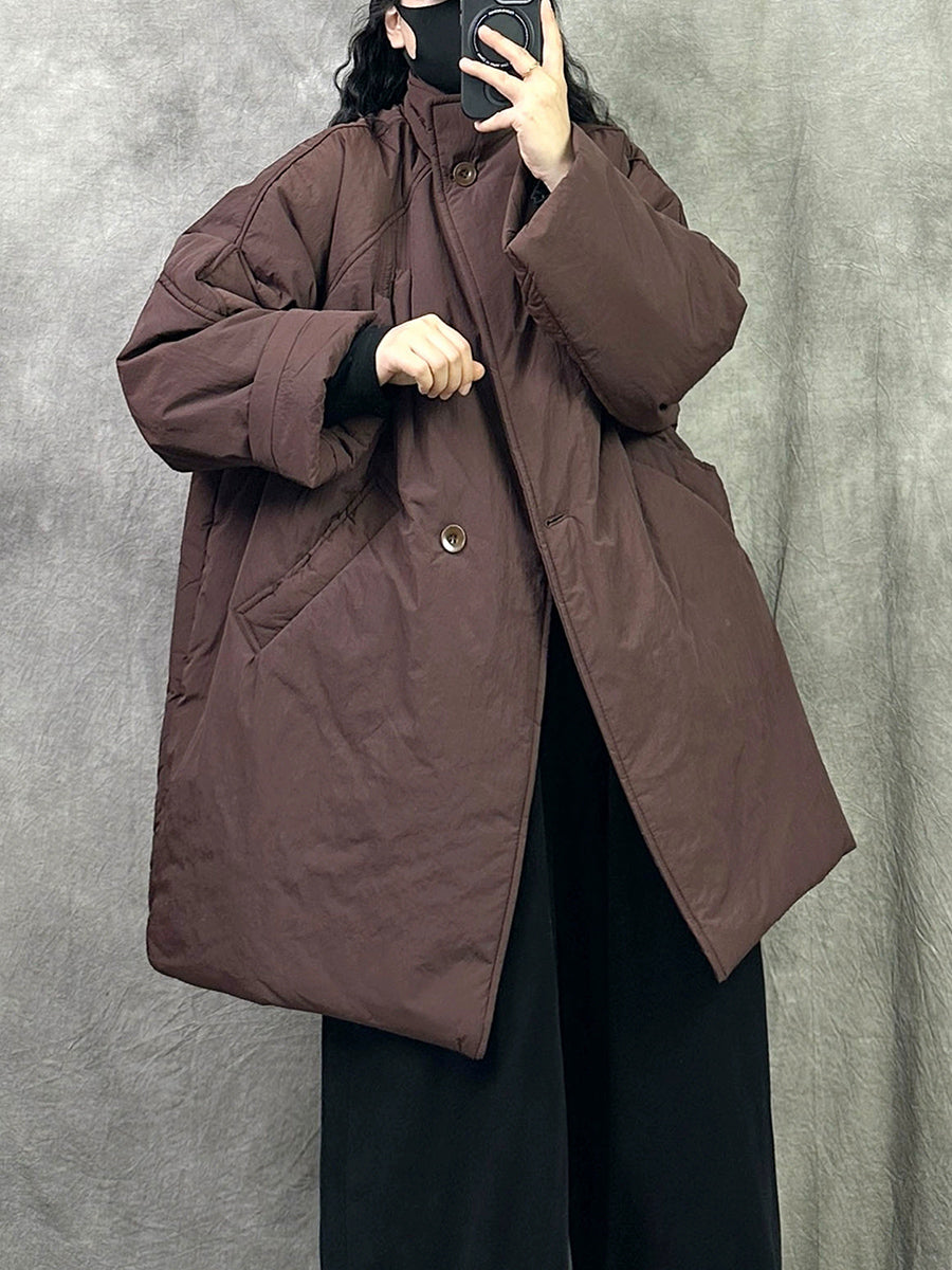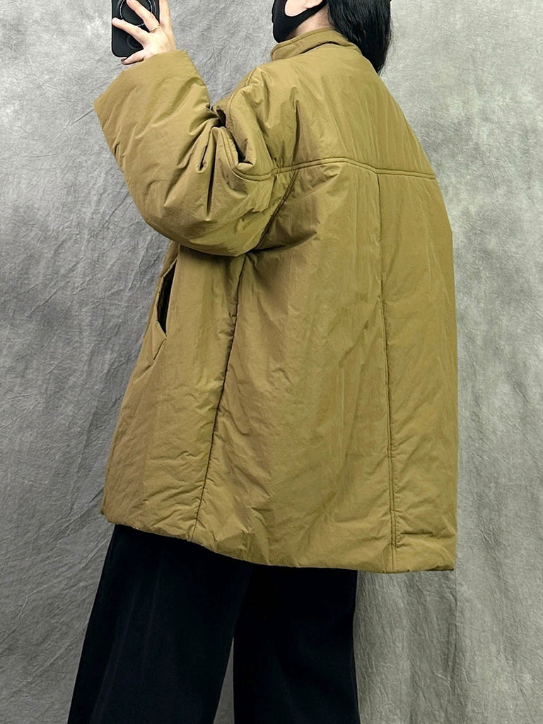 Kvinder Vinter Ren Farve Stand Collar Polstret Frakke