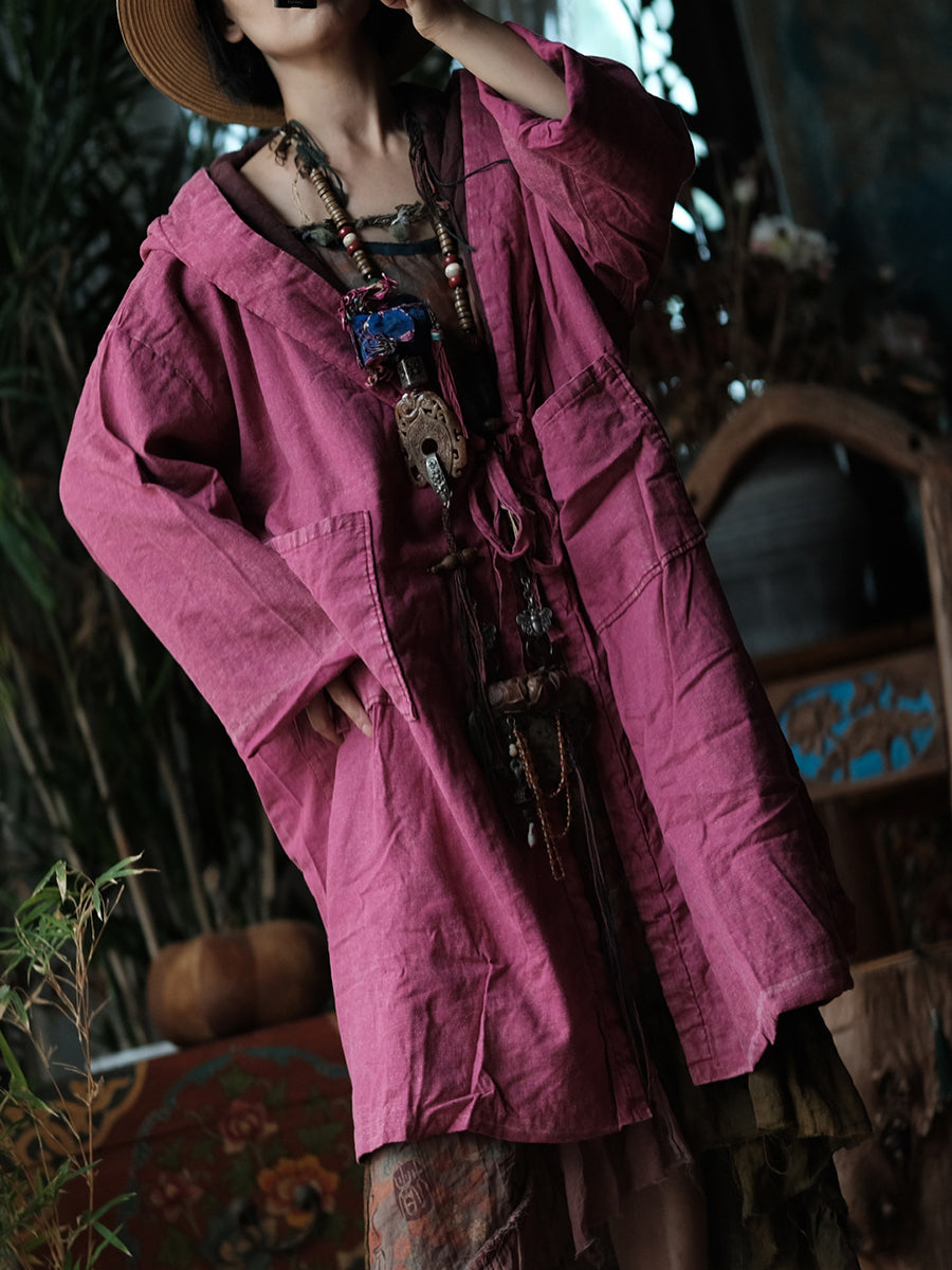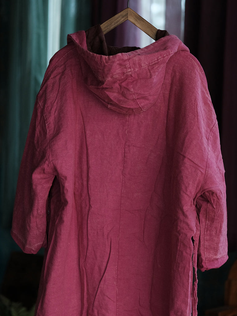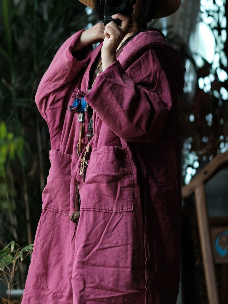 Kvinder Vinter Retro Ren Farve Hættetrøje med Polstret Frakke