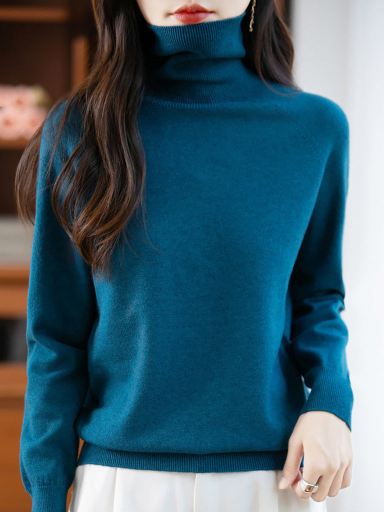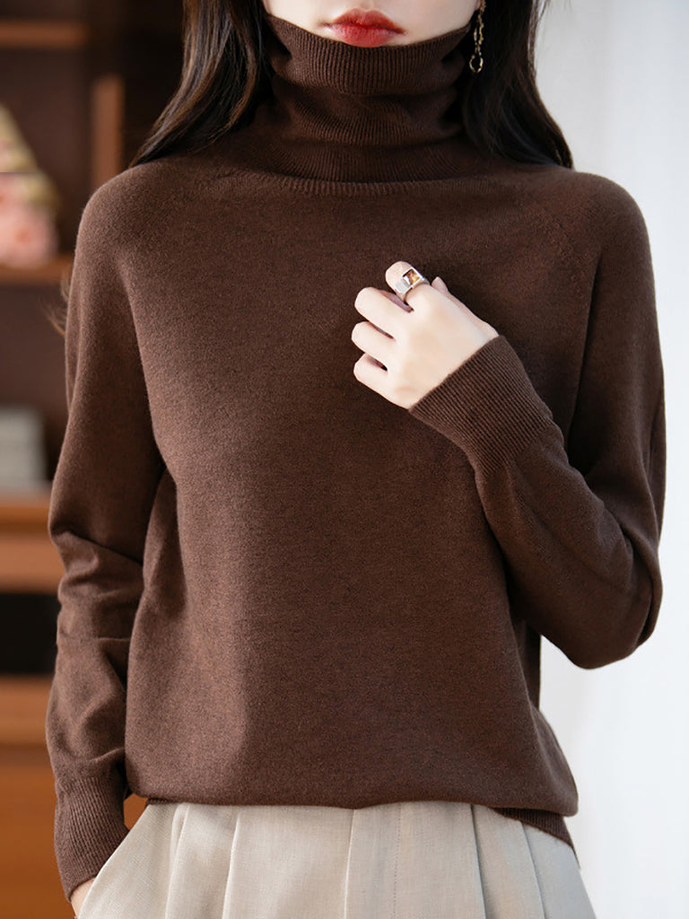 Kvinder uregelmæssig solid sweater rullekravetrøje