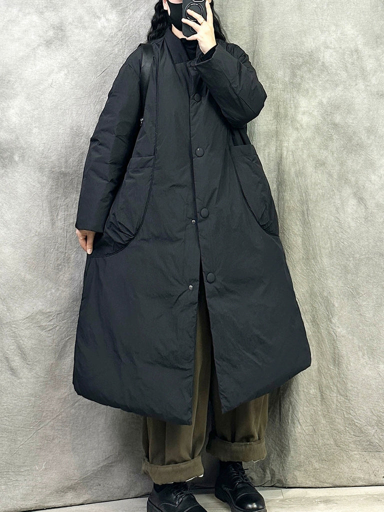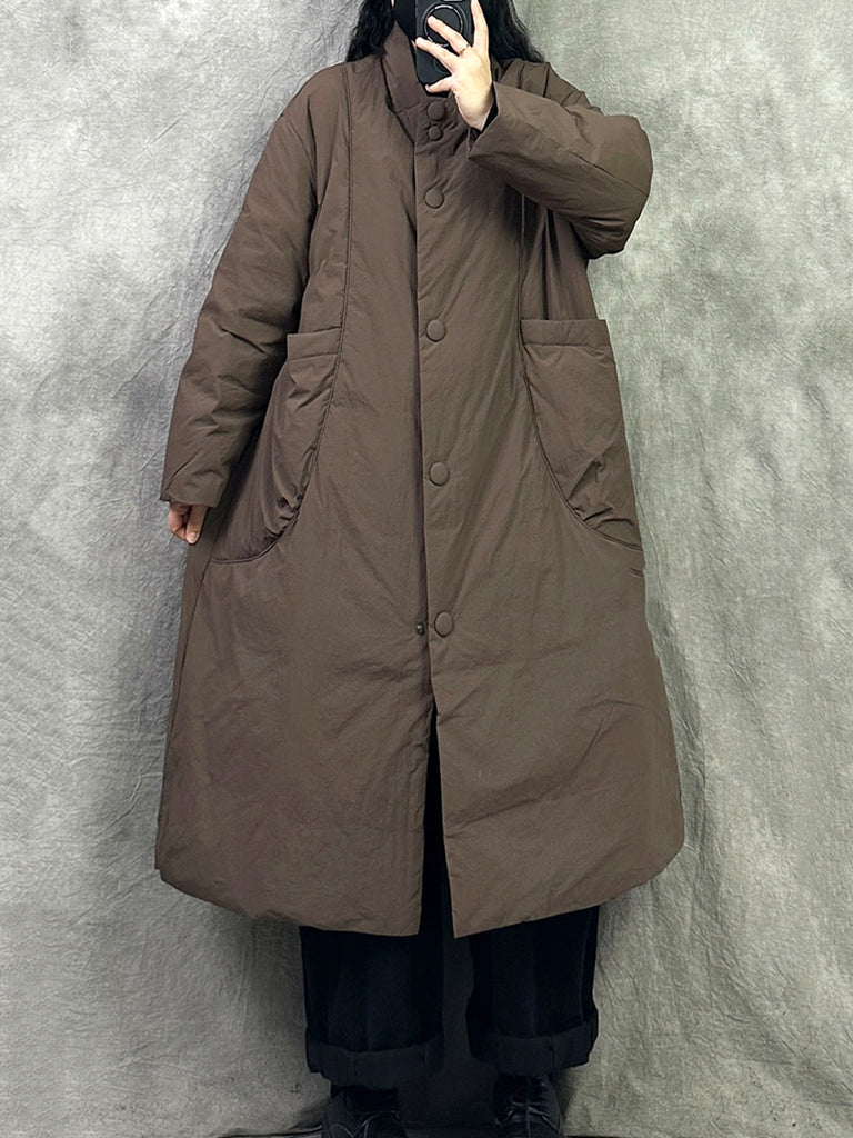 Kvinder Vinter Ren Farve Stand Collar Lang Dunfrakke