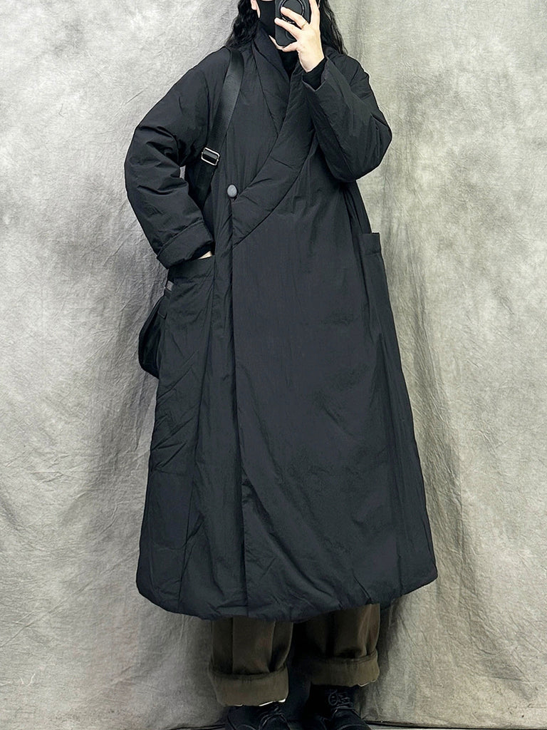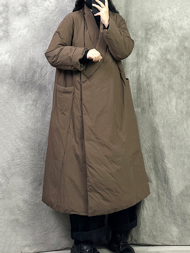 Kvinder Vinter Retro Ren Farve V-Hals Dunfrakke