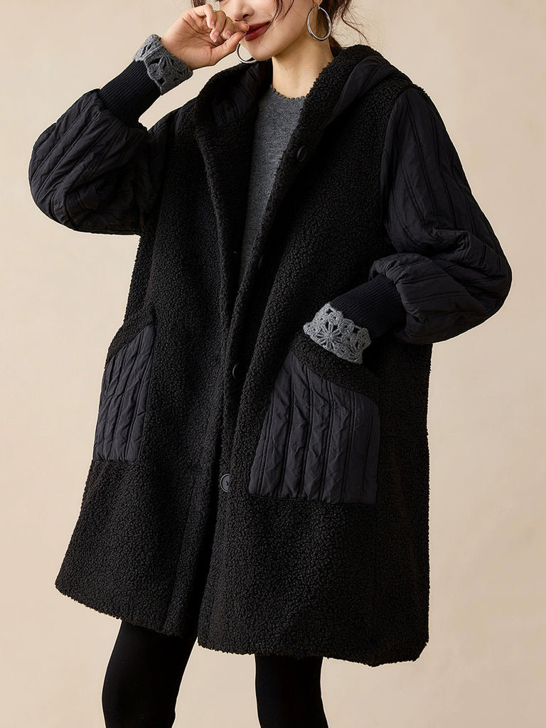 Plus Size Retro Ink Dot Loose Hooded Overcoat