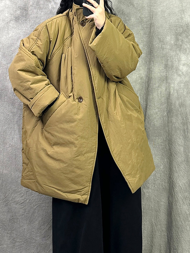 Kvinder Vinter Løs Lantern Sleeve Mid Længde Frakke