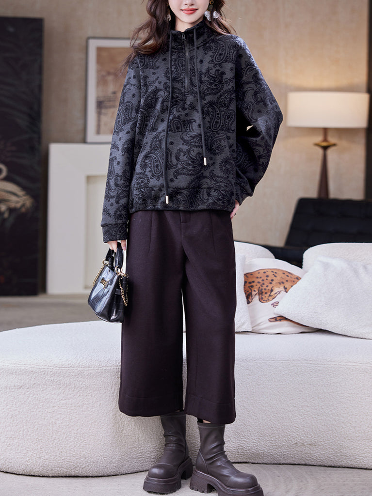 Kvinder Vinter Retro Blomster Fleeceforet Stand Collar Bluse