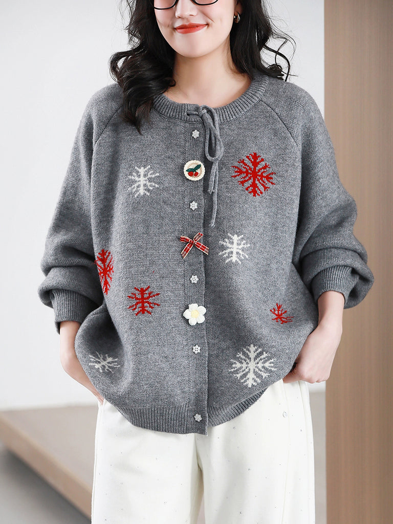Kvinder Efterårsjulesnefnug O-hals sweater