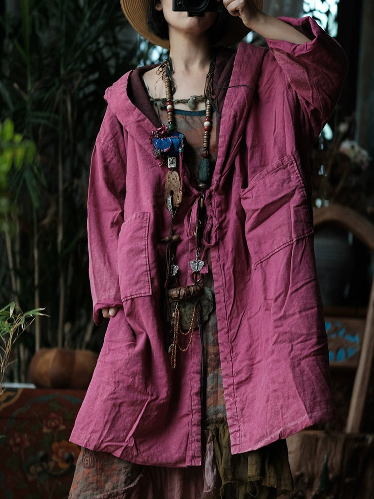 Plus Size Bomuld Linen Vintage Breasted Pocket Stitching Coat