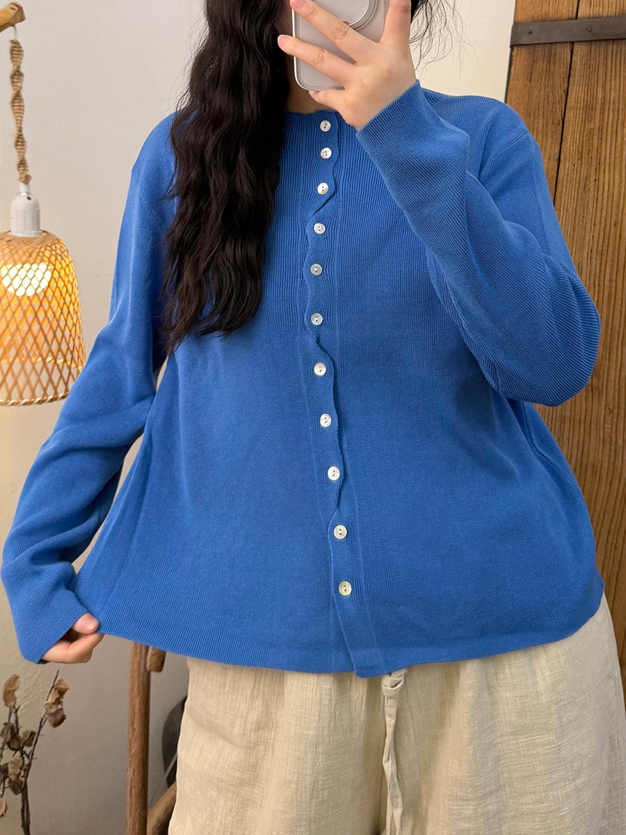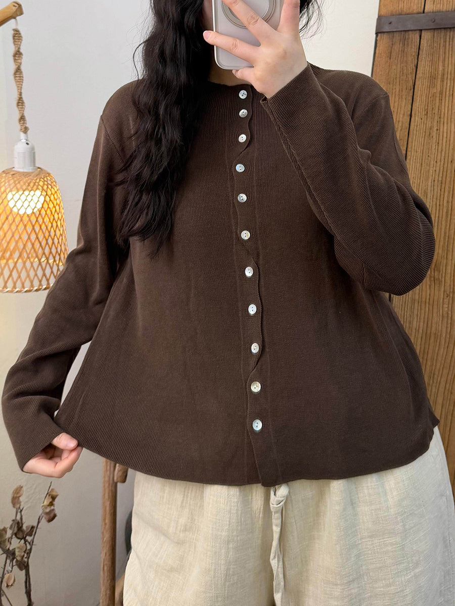 Kvinders forårsskjorte med ren farve og O-hals