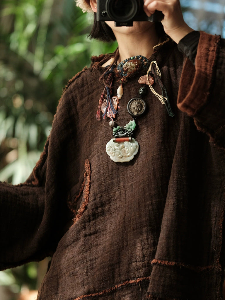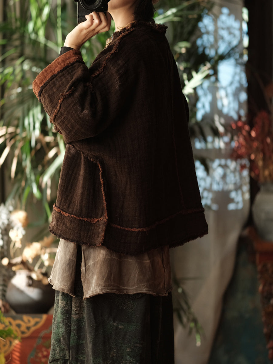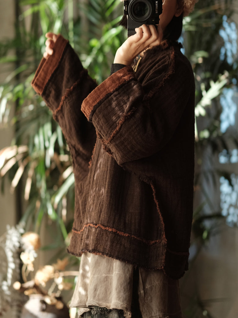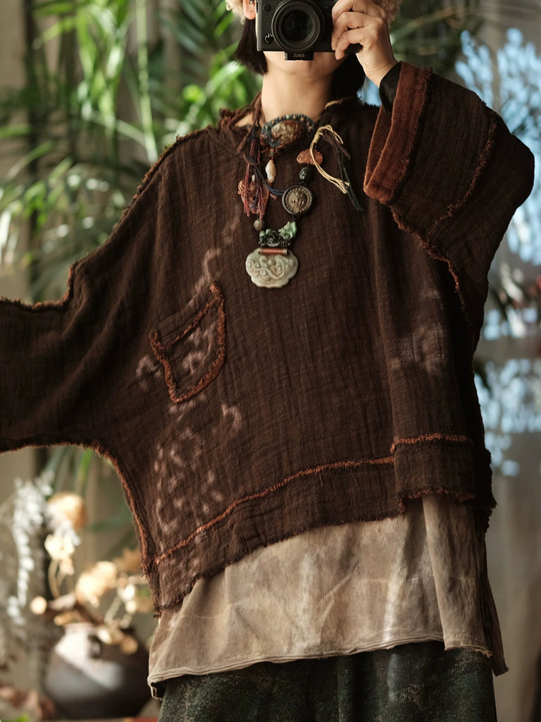 Kvinder Vinter Retro Raw-edge Spliced O-hals Bluse