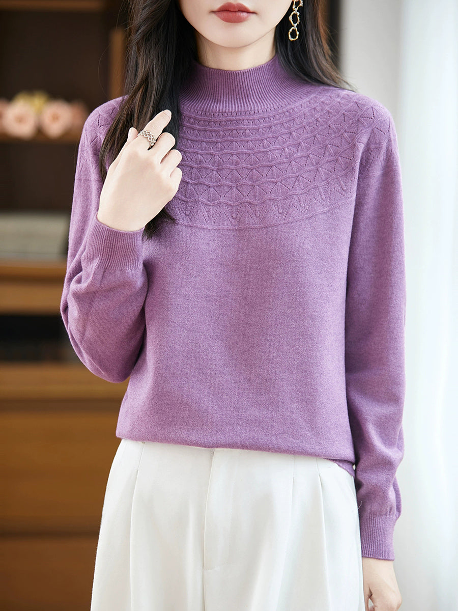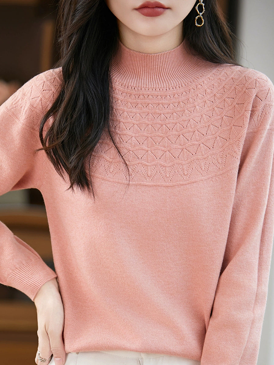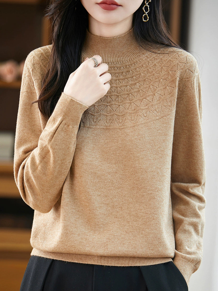 Kunstnerisk forårs-trøje med høj hals og rullekrave til kvinder