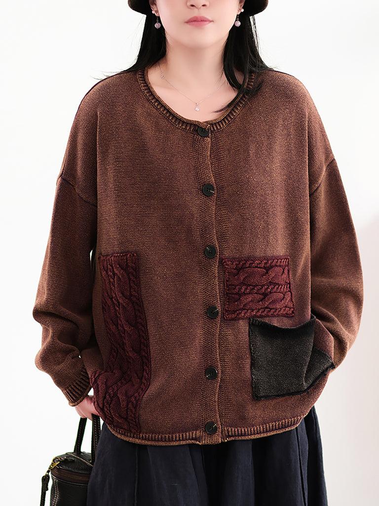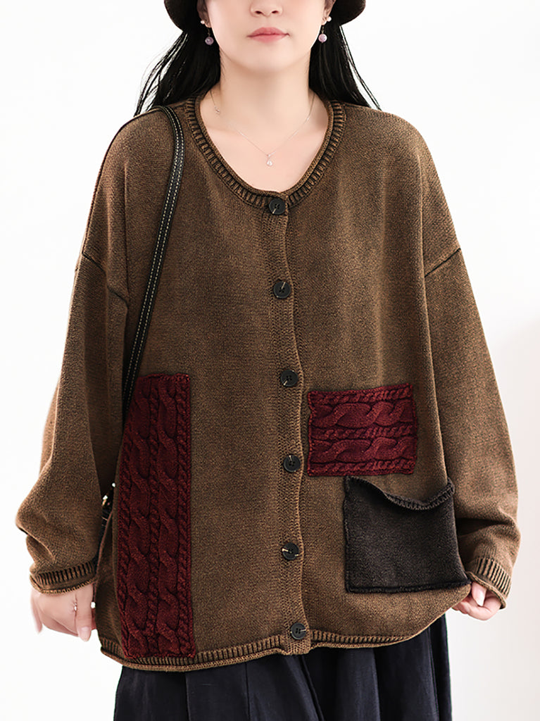 Kvinder Efterår Retro Patch Spliced Strikket O-hals Sweater