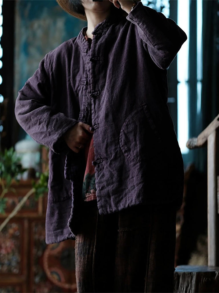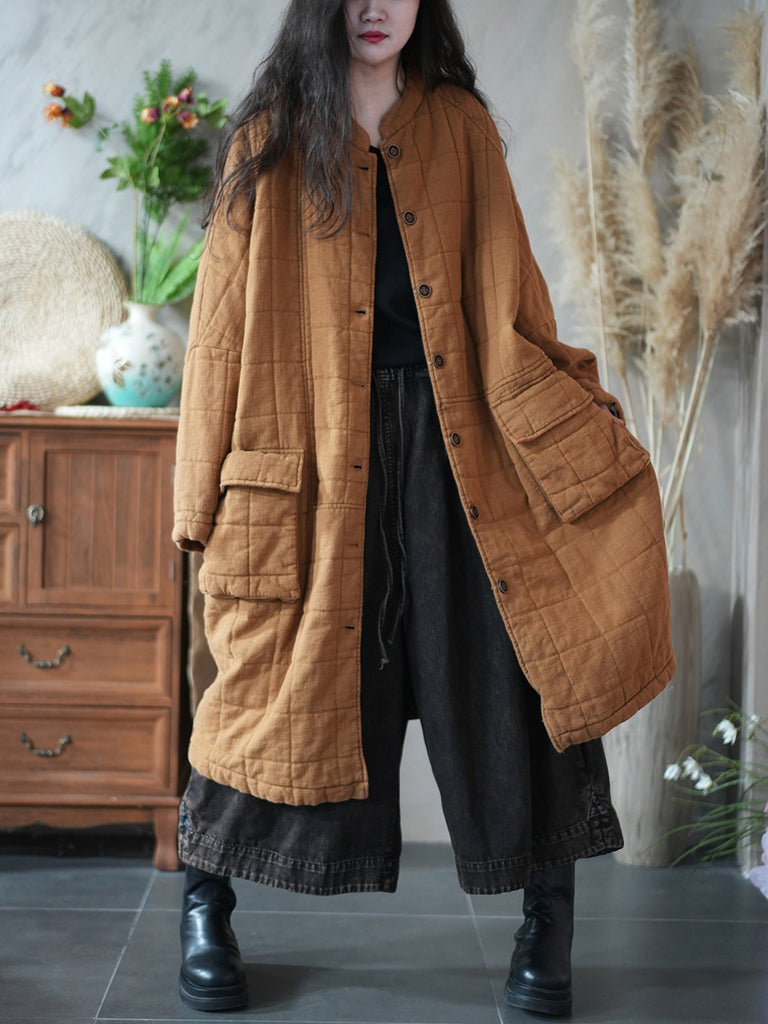 Kvinder Autumn Pure Color Stand Collar Bomuld Polstret Coat