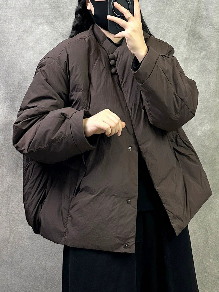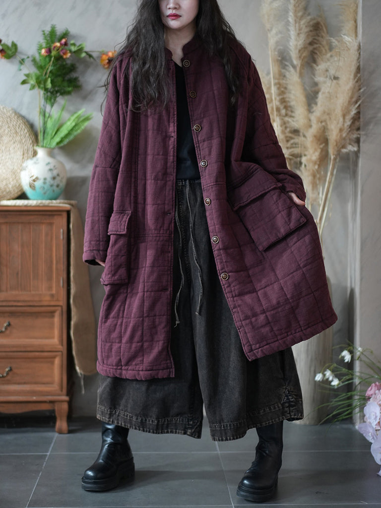 Kvinder Retro Vinter Ren Farve Stand Collar Polstret Frakke