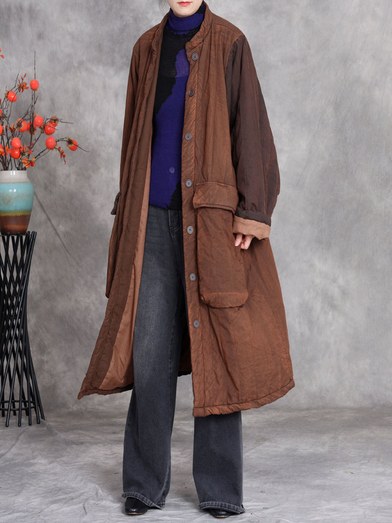 Kvinder Retro Vinter Colorblock Stand Collar Polstret Frakke