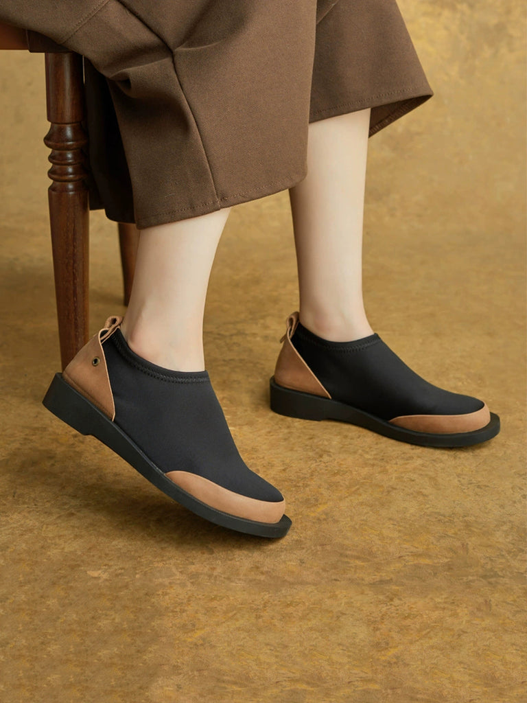 Kvinder Efterår Vintage Colorblock Spliced Lavhælede Sko