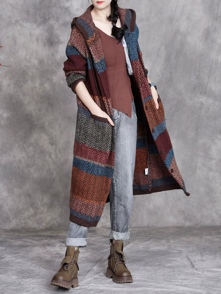 Kvinder Vintage Patch Splejset Jacquard Hættetrøje