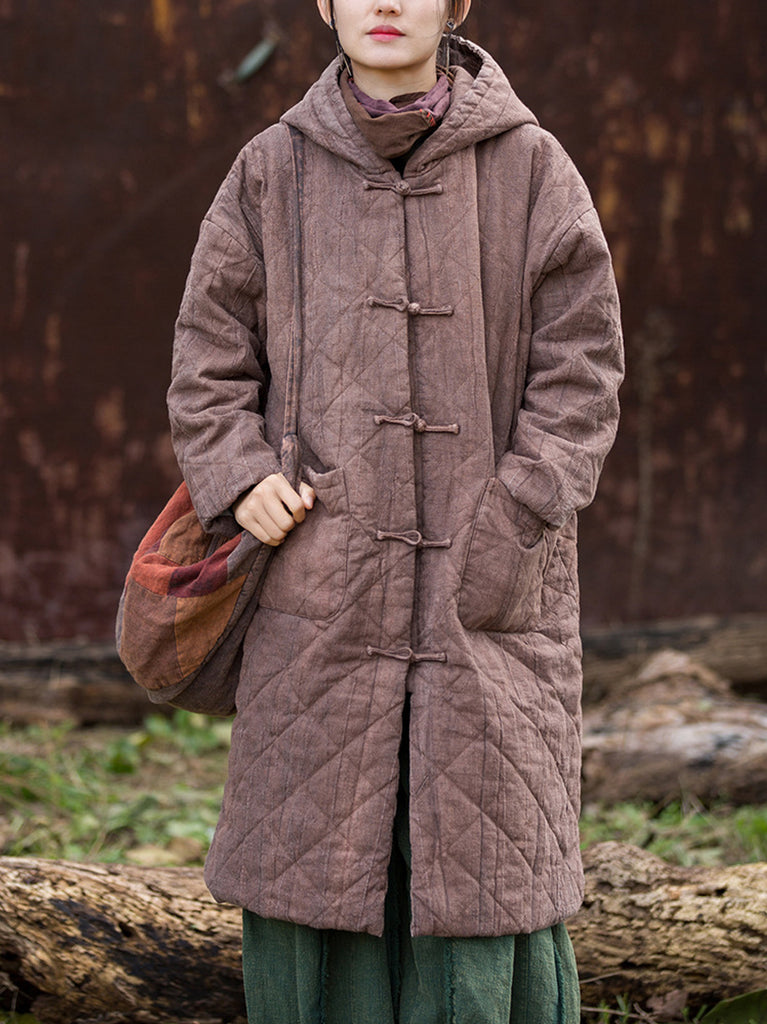 Kvinder Vinter Retro Ren Farve Hør Polstret Frakke