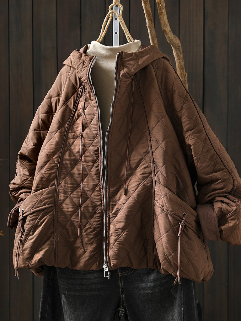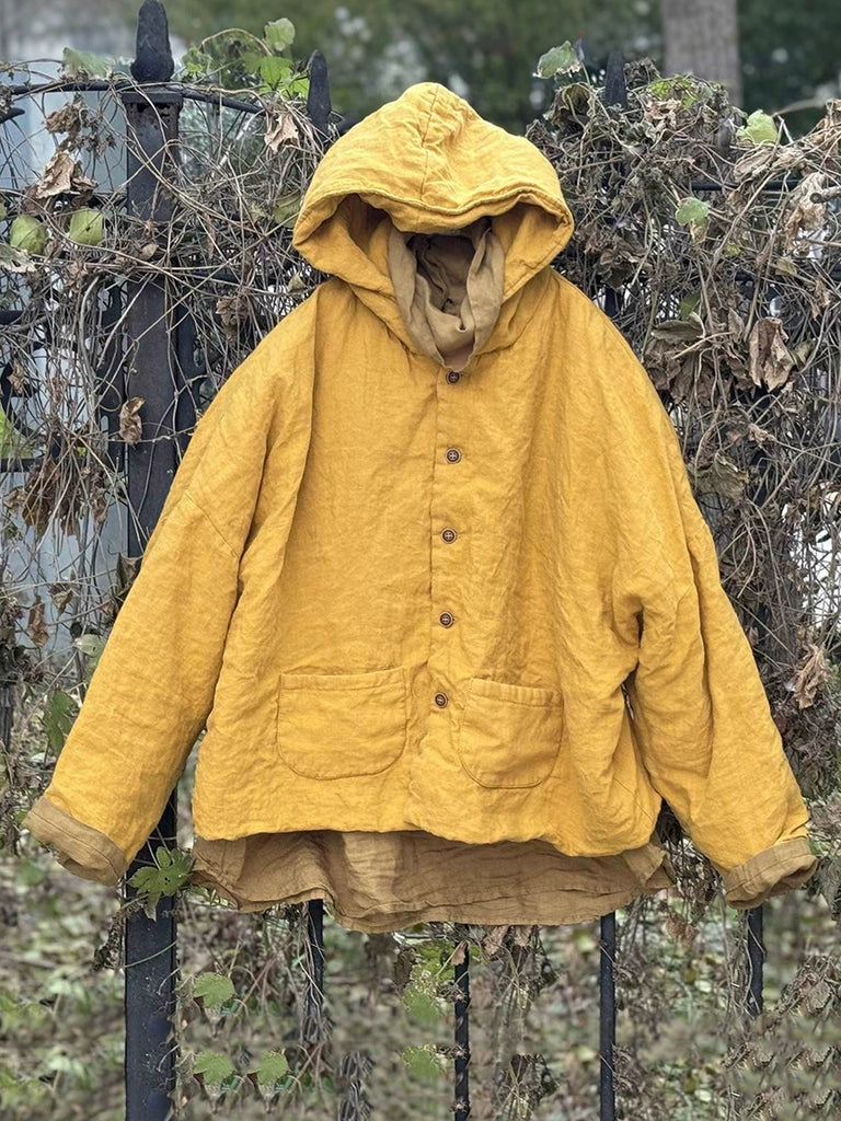Kvinder Vinter Retro Ren Farve Ramie Polstret Hættetrøje