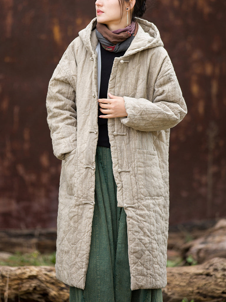 Kvinder Vinter Vintage Linen Bomuld Polstret Frakke