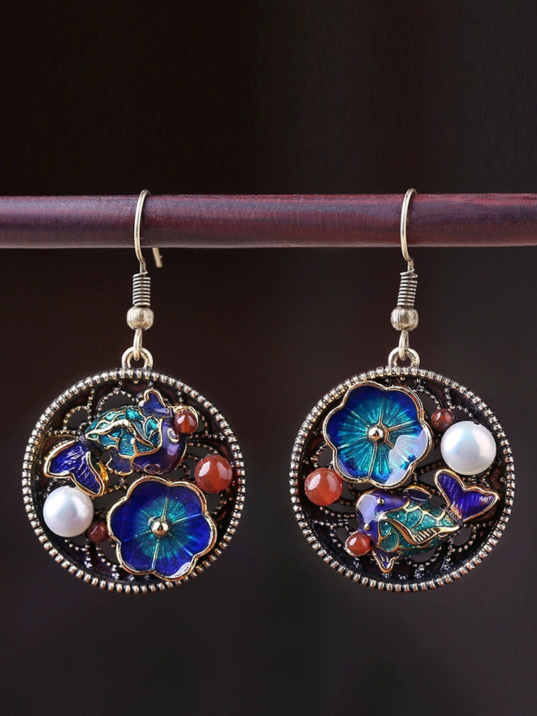 Etniske S925Sølvperle Cloisonné Agat Øreringe