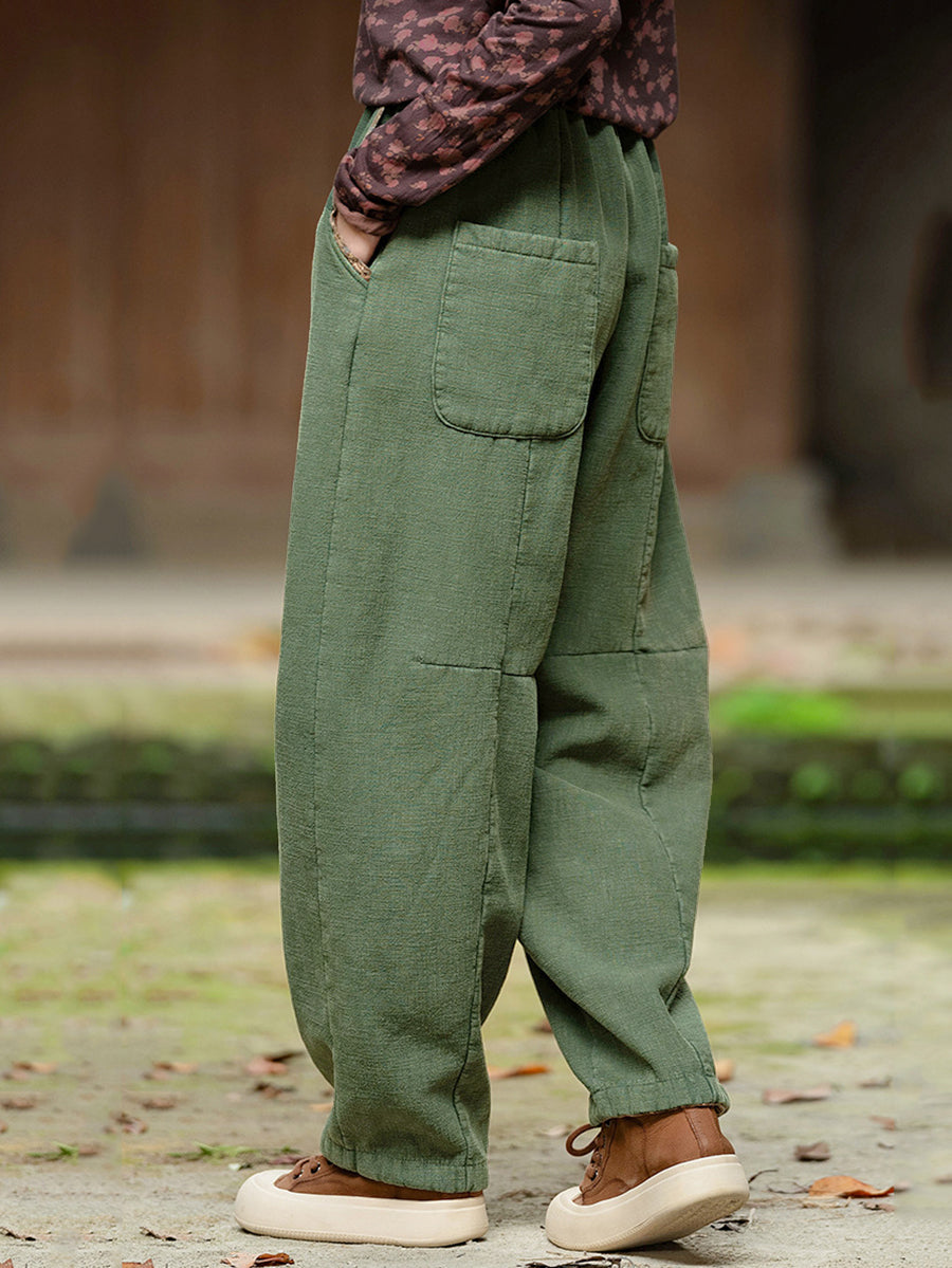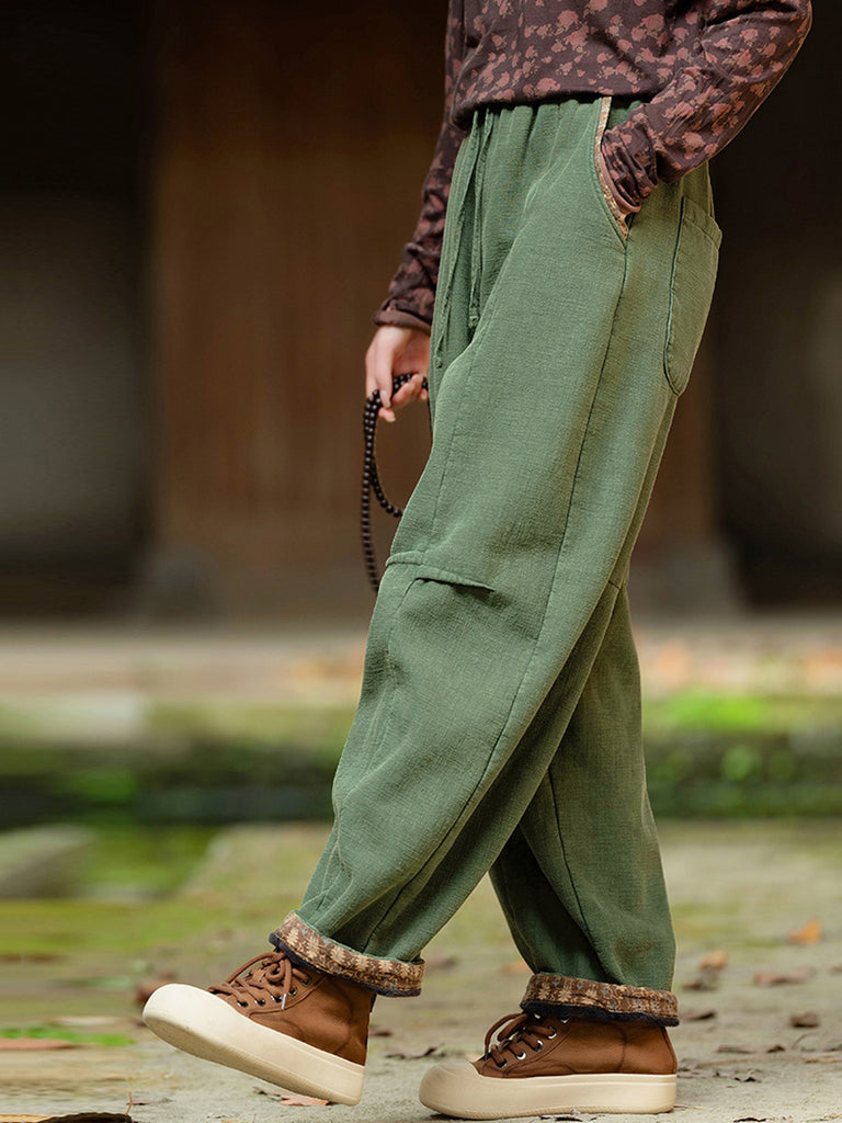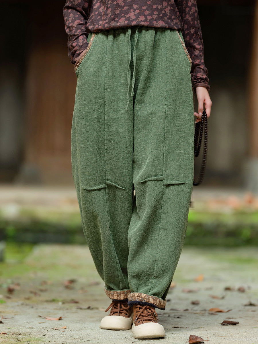 Plus Size Women Winter Retro Solid Spliced Padded Harem Pants