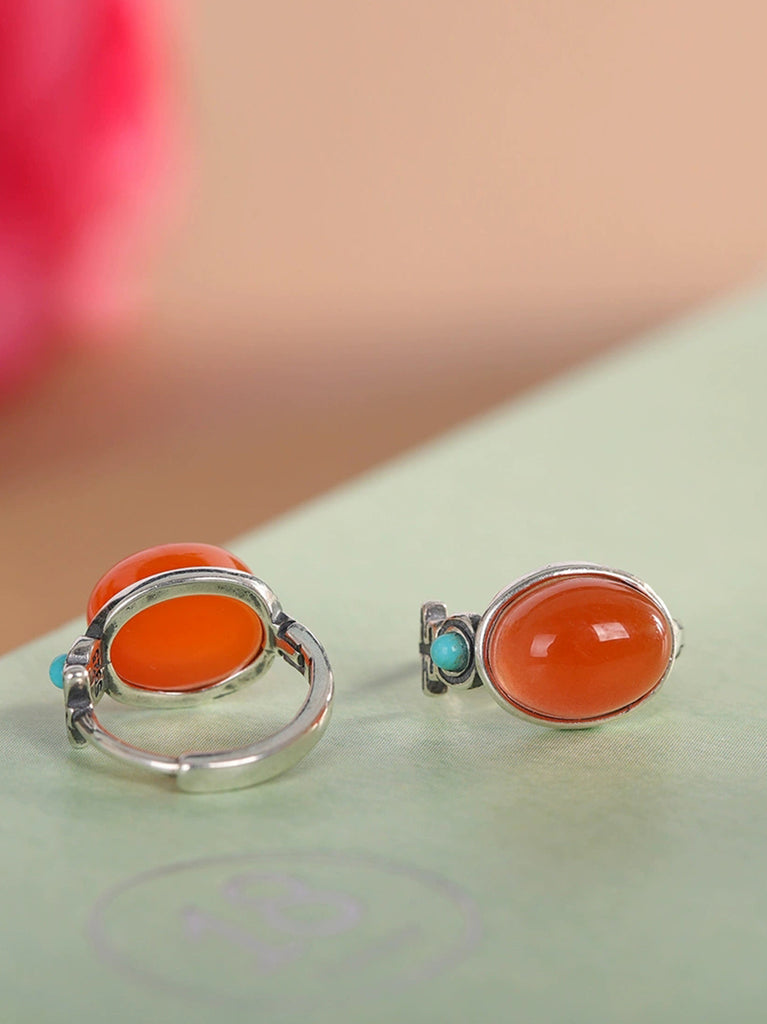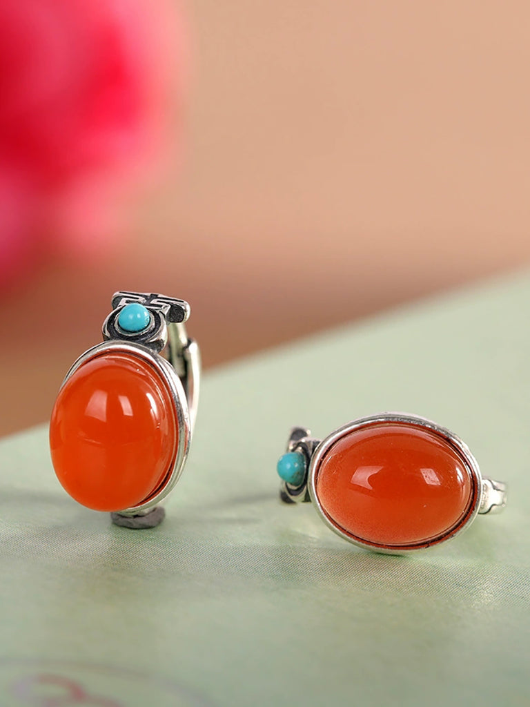 Women Vintage S925Silver Red Agate Earrings