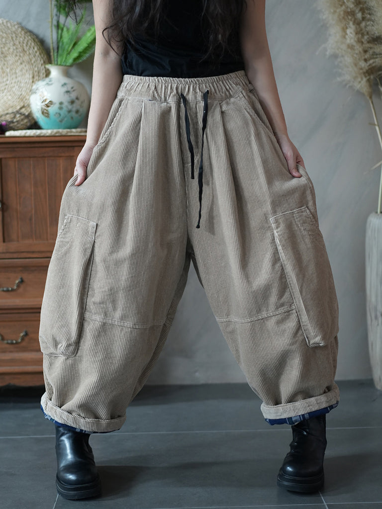 Women Winter Pure Color Corduroy Padded Harem Pants