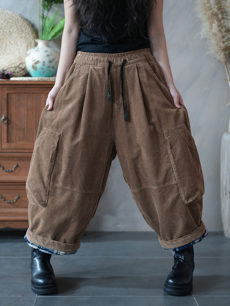 Women Winter Retro Flower Corduroy Harem Pants