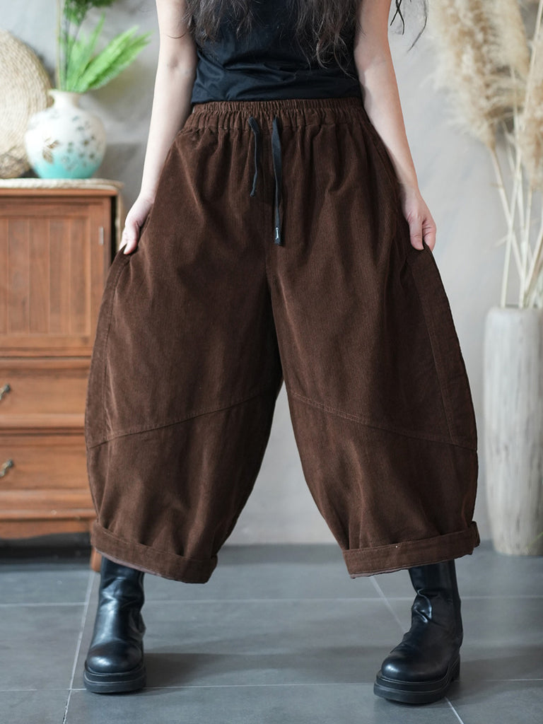 Women Winter Retro Pure Color Corduroy Wide-leg Pants