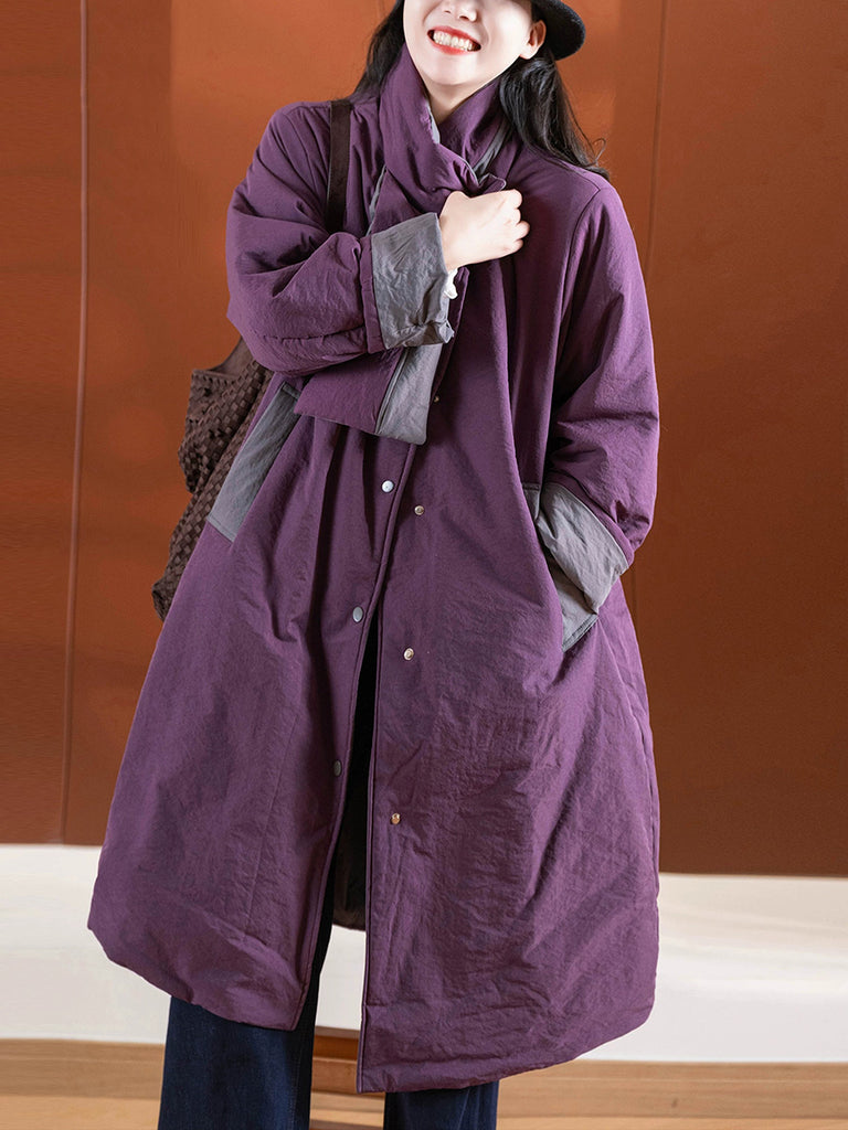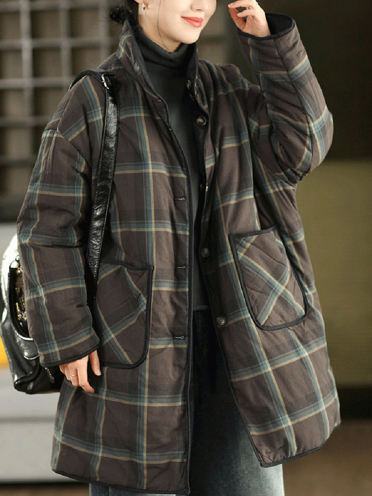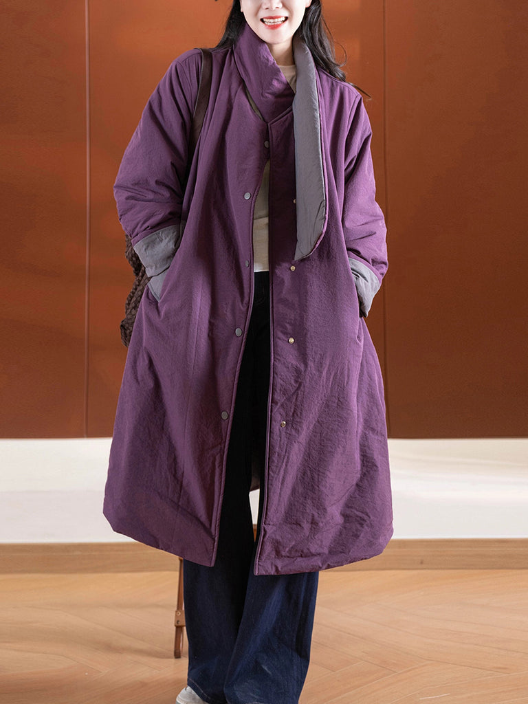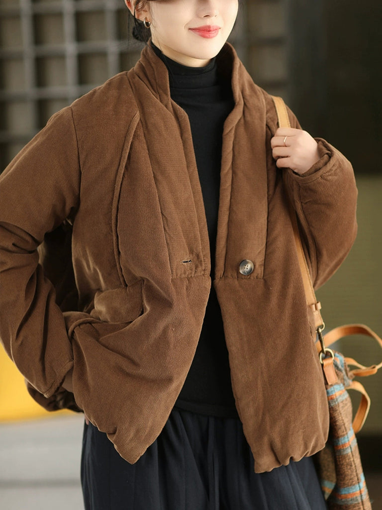 Women Winter Retro Pure Color Padded Stand Collar Coat