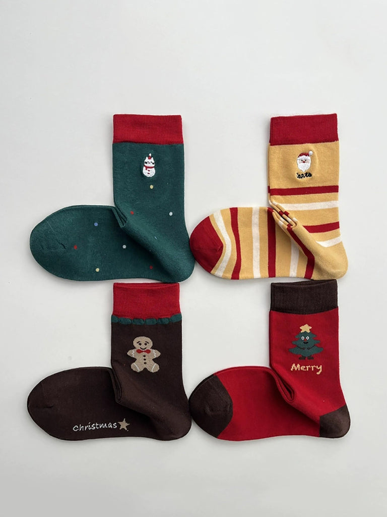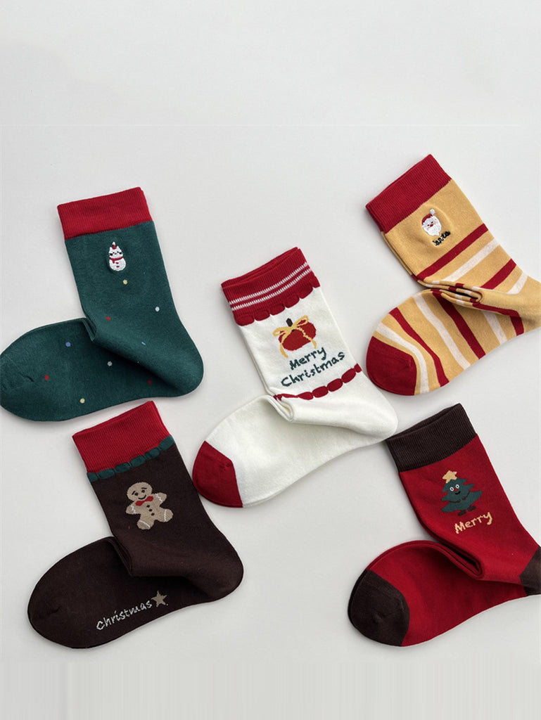 5 Pairs Women Chirstmas Sytle Colorblock Cotton Socks