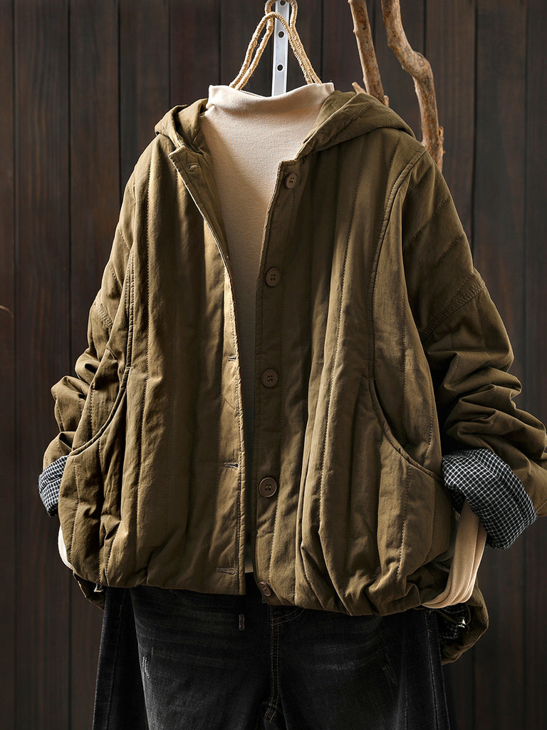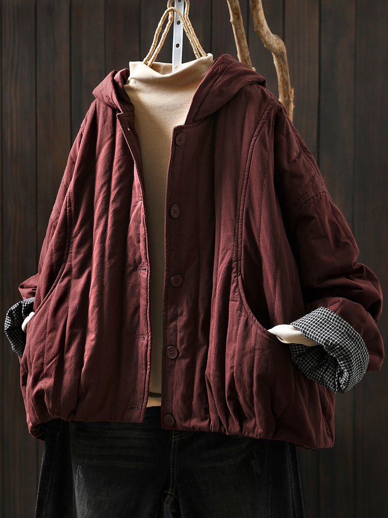 Women Winter Casual Pure Color Padded Hooded Coat