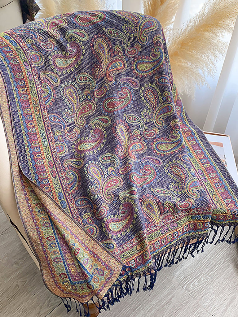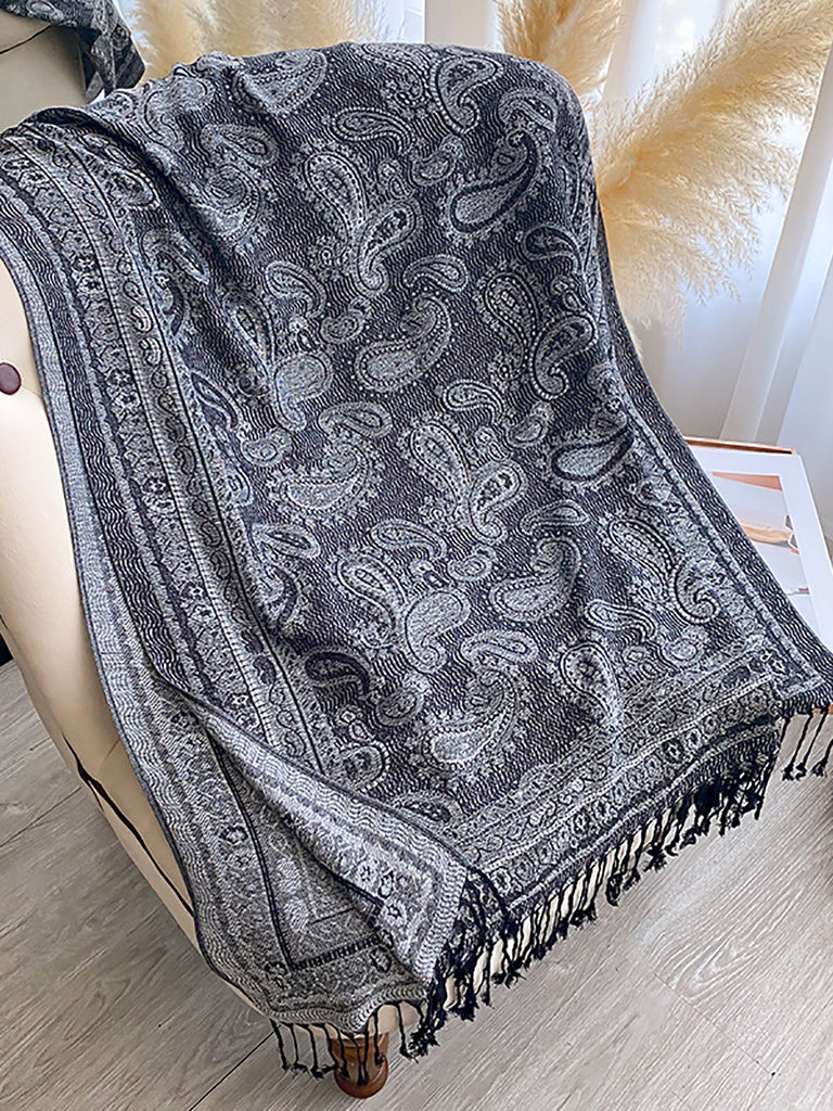 Women Winter Flower Jacquard Tassel Shawl Scarf