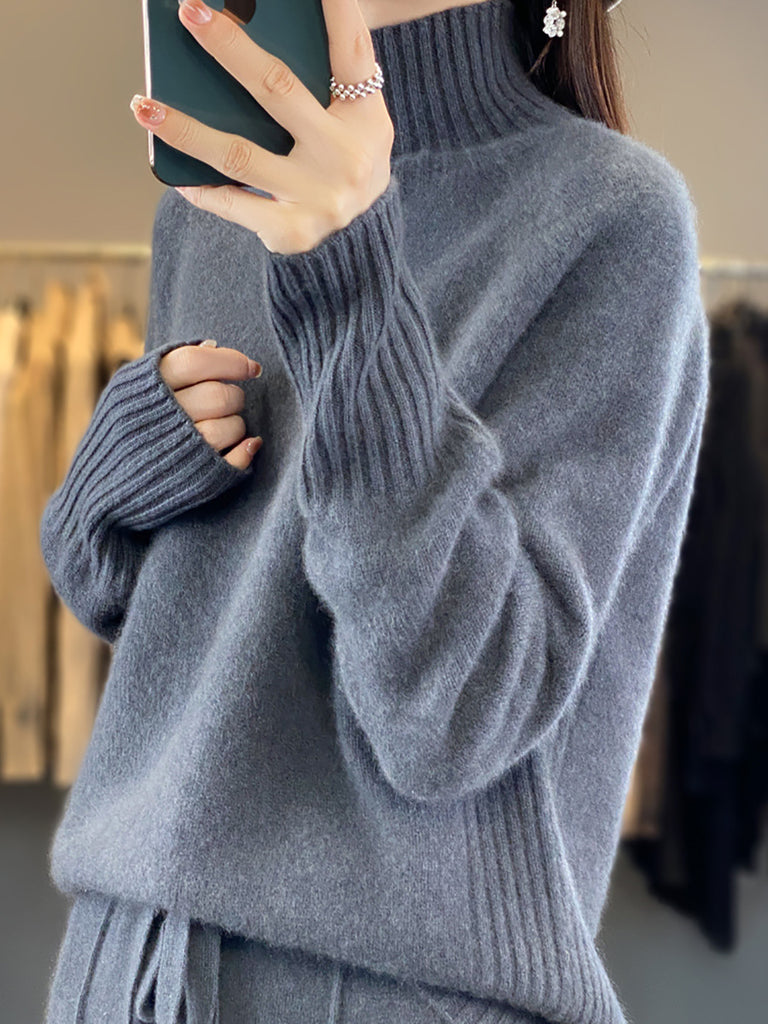 Women Winter Casual Pure Color Turtleneck Sweater