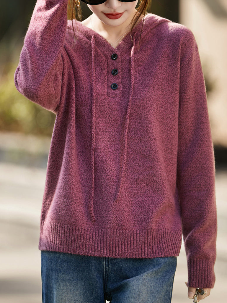 Women Autumn Artsy Pure Color Hooded Sweater
